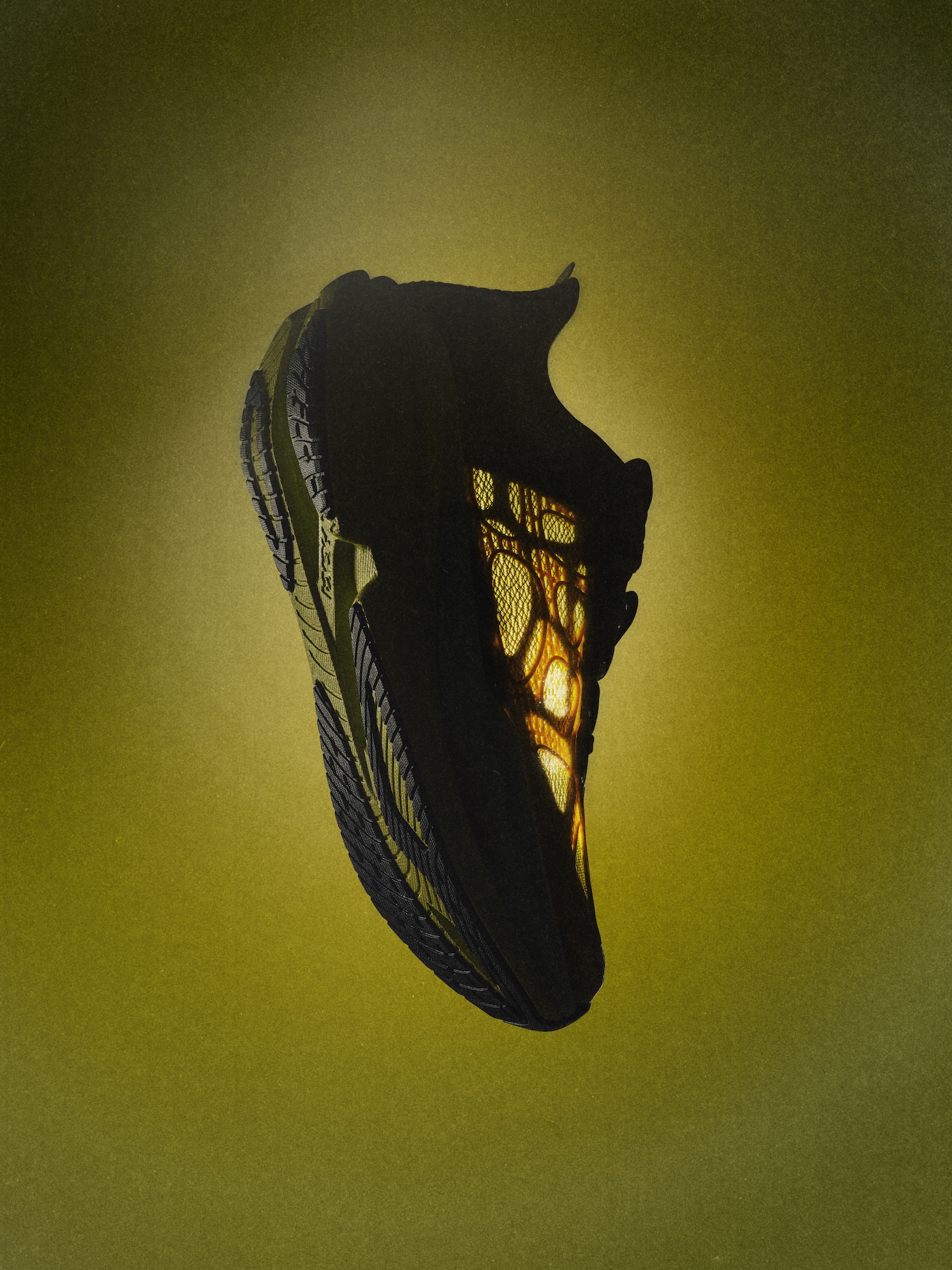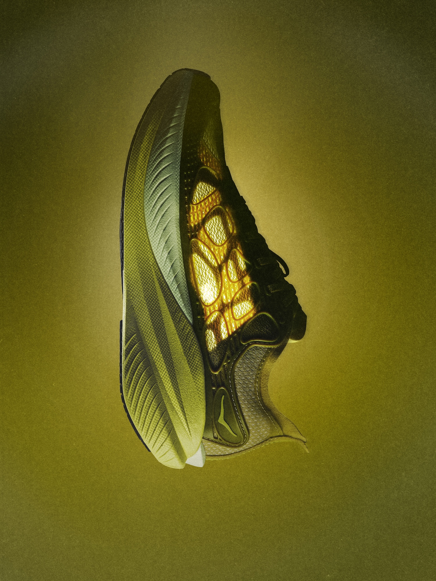 As part of the long-running Mach series, known for its balance between racing technology and everyday mileage, the X Caged takes the formula into more radical territory. A moulded TPU cage runs across the upper, its sculptural form layered over transparent mesh underlays that feel closer to architecture than sportswear. Every detail has been exaggerated: the flow moulding, the textured ridges, the sense that this shoe is designed to stand out before it even hits the pavement.