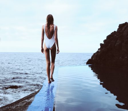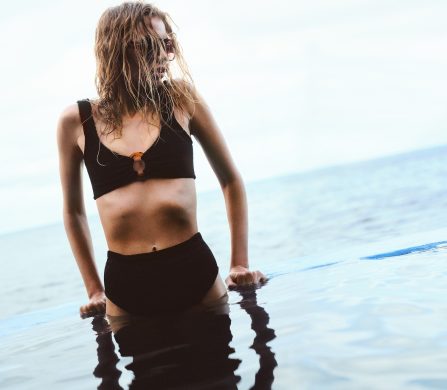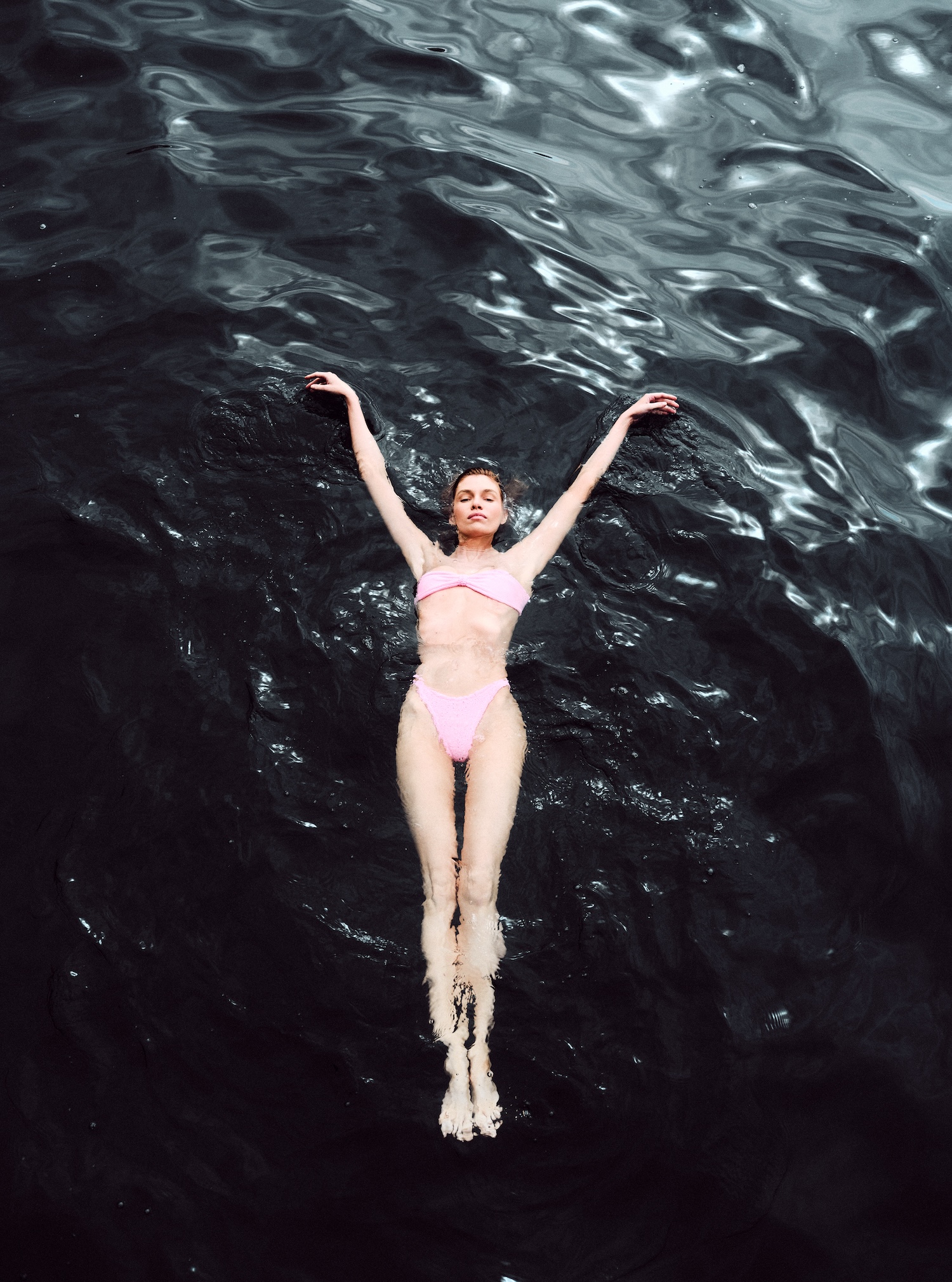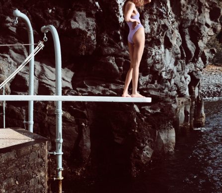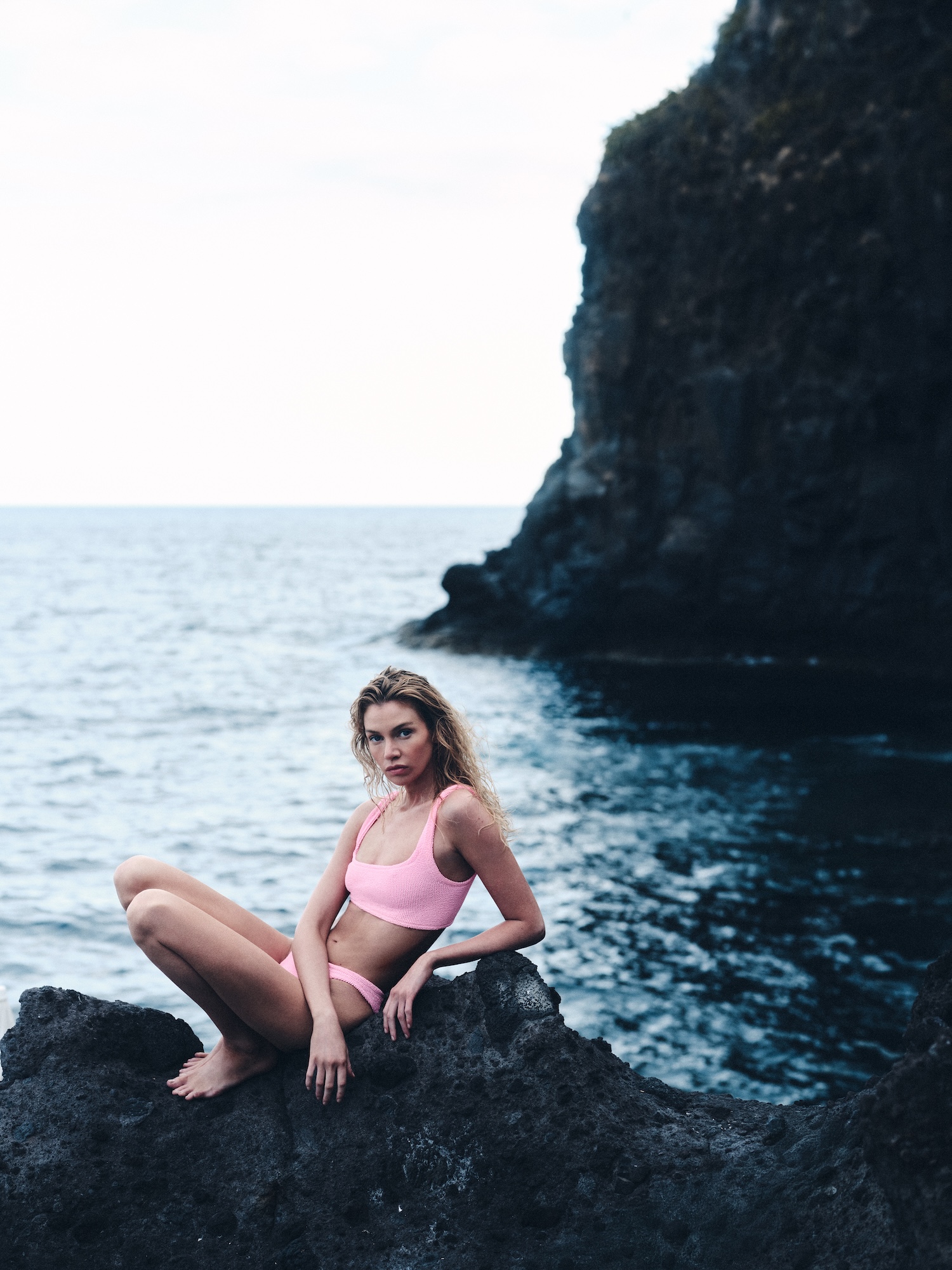 The Core Collection is exactly what you’ve come to love from Hunza G, but sharper and more polished. Core silhouettes like the Pamela, Jean, Nadine, and Xandra – all cult-watched favourites – return in a palette that’s striking and timeless: bubblegum pink, metallic cocoa, lilac, along with classic black and white. Square-neck one-pieces, ring-detail bikinis, and scoop-neck suits take centre stage, shown off against sun-eaten walls and a glittering sea. The new collection even includes easy-transition pieces beyond swim, like mini skirts and dresses to ease that move from poolside to sunset cocktails.