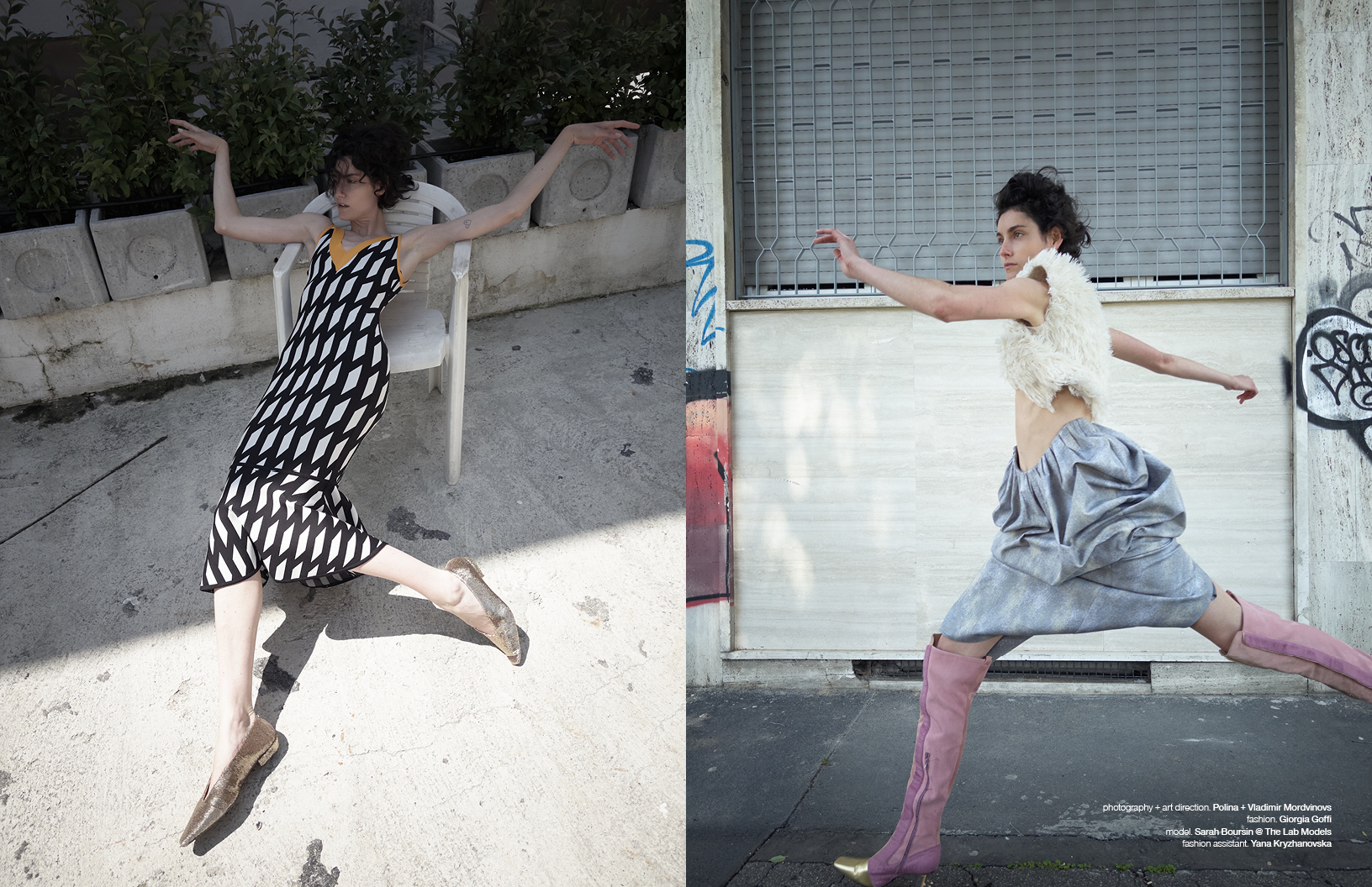 Falling in love is swift and fast in this Schön! editorial photographed and art directed by duo Polina and Vladimir Mordvinovs with styling by Giorgia Goffi who dresses Sarah Boursin in looks by Isabel Marant, Ferragamo, and others.