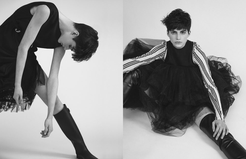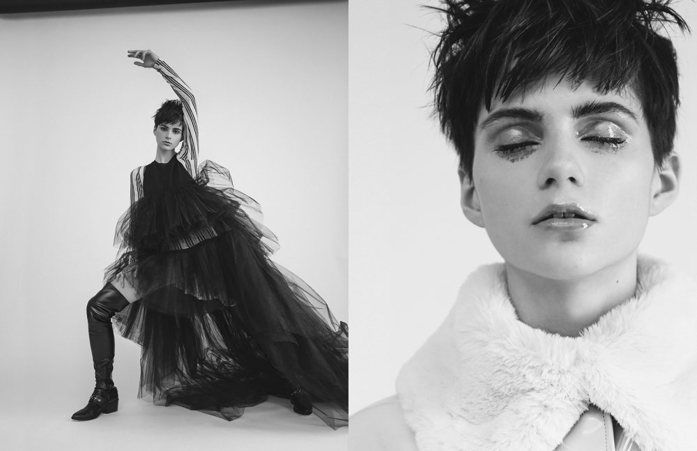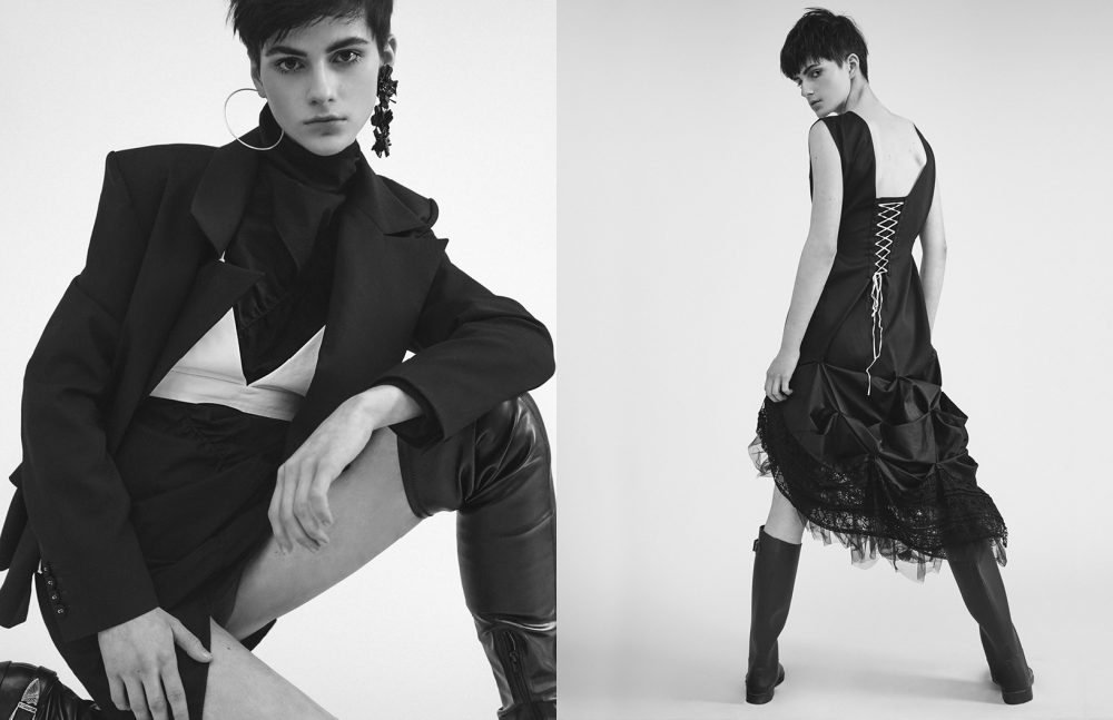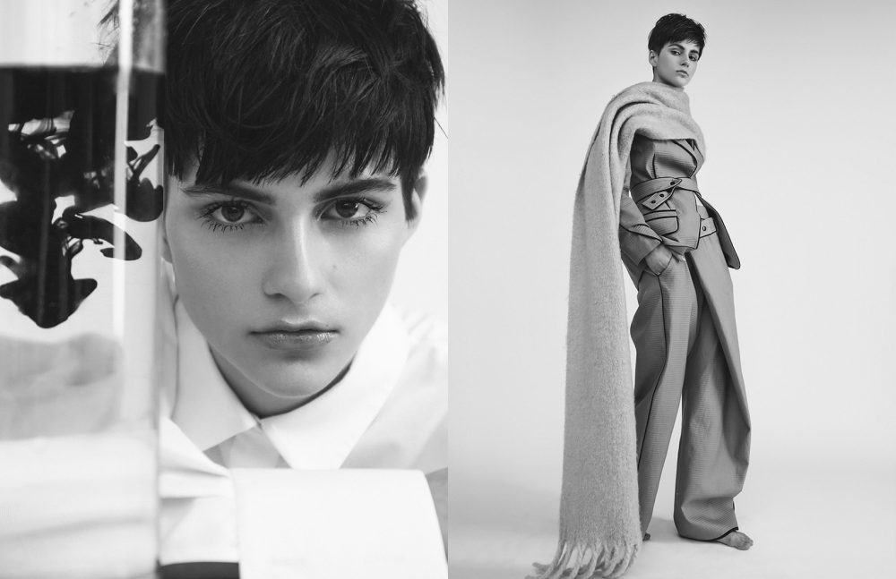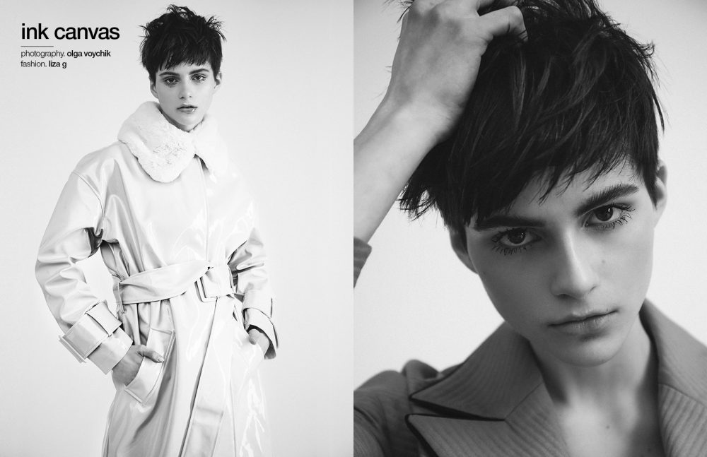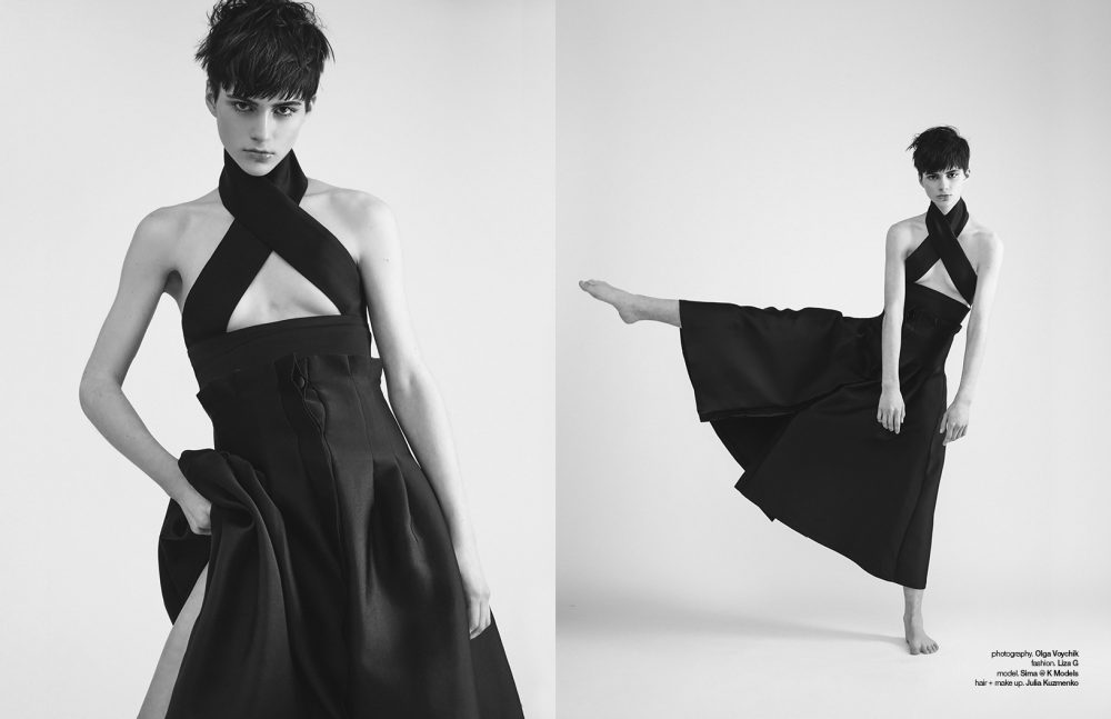 Photographer Olga Voychik takes monochromatic minimalism to another level in this Schön! online editorial. Generating texture and movement, stylist Liza G dresses model Sima in Gudu and Uterqüe. Hair and makeup by Julia Kuzmenko impeccably mirrors the nature of the scene.