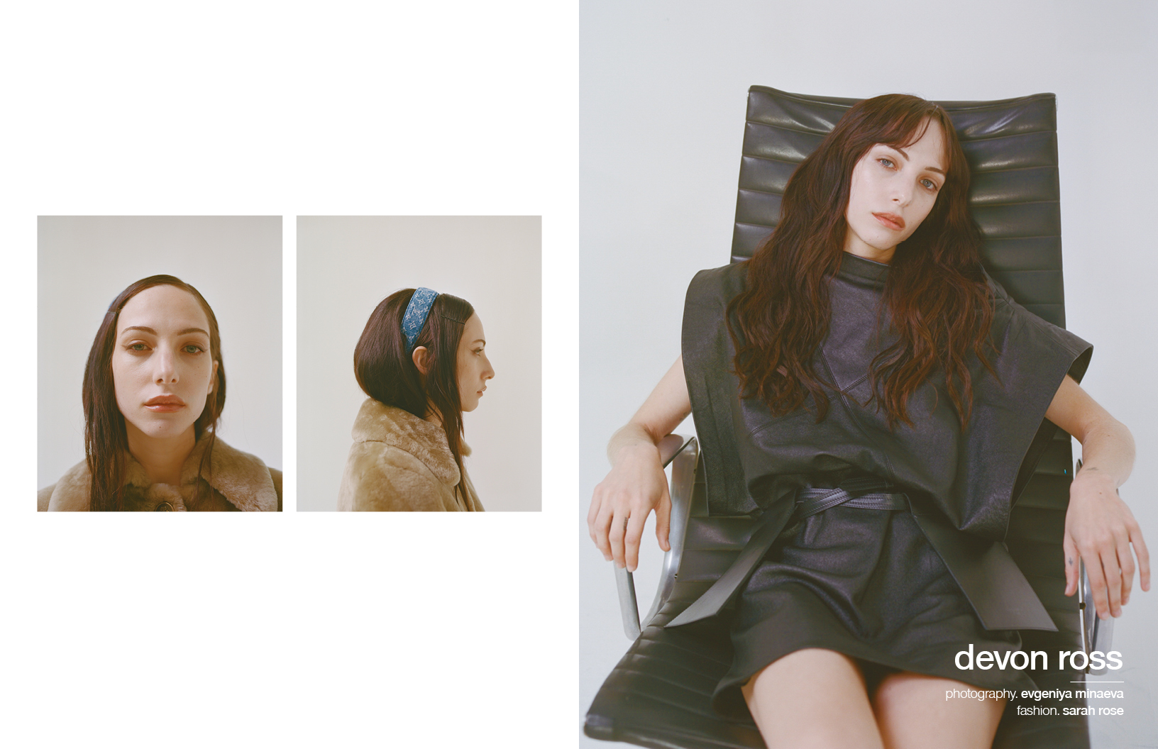 Initially quiet and reserved, Devon Ross gradually reveals her vast artistic world. We connect with her via video call. Ross seems serene, vaping and surrounded by guitars in what looks like a music studio. She embodies a laid-back coolness that seems to flow in her veins—after all, she is the daughter of Crag David Ross, Lenny Kravitz’s lead guitarist, and former model Anna Bauer. Furthermore, her upbringing split between the shores of The Bahamas, the artistic vibe of Woodstock, and the never-ending energy of Los Angeles, has undoubtedly played a role in shaping her unique style. The more we talk, the more it is clear that her artistic journey has only just begun.