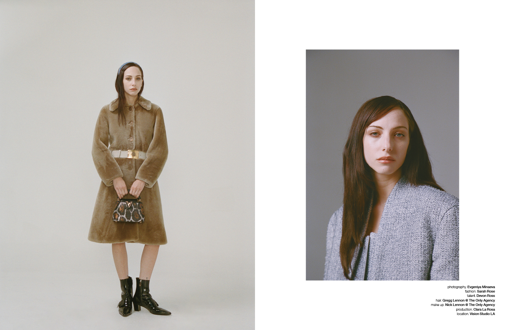 As a model, Ross has graced the catwalk of Valentino, landed a Gucci campaign, and more recently became a “friend of the house” of Louis Vuitton. Beyond modelling, Ross is a talented musician and actress. Last year, she launched her debut EP, Oxford Gardens and starred in the thriller Depravity, where she plays the role of Aria. We have also seen her alongside Alicia Vikander in the drama mini-series Irma Vep, and more recently in My First Film by Zia Anger. Presented as a film within a film, it’s an honest and insightful perspective of a young filmmaker struggling to create her first feature. Definitely not her first role, Ross plays Dina, the newly starring actress.