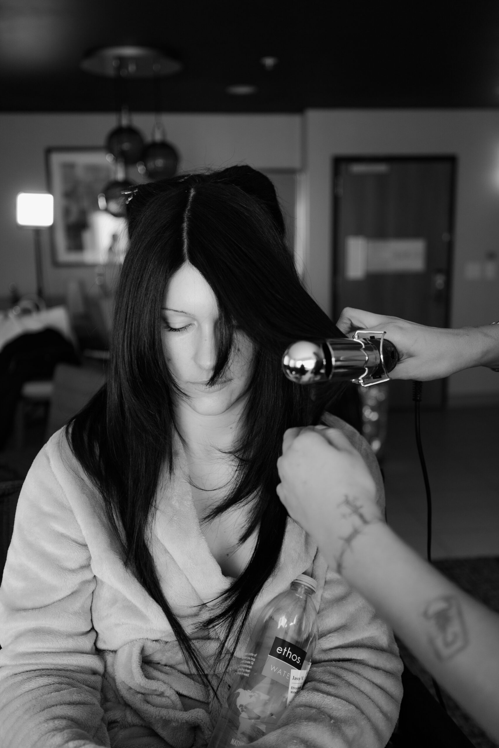 Lana decided to put tape in extensions in and not just clip-ins, and it was so much more comfortable in my hair for the long day… I still have them in!