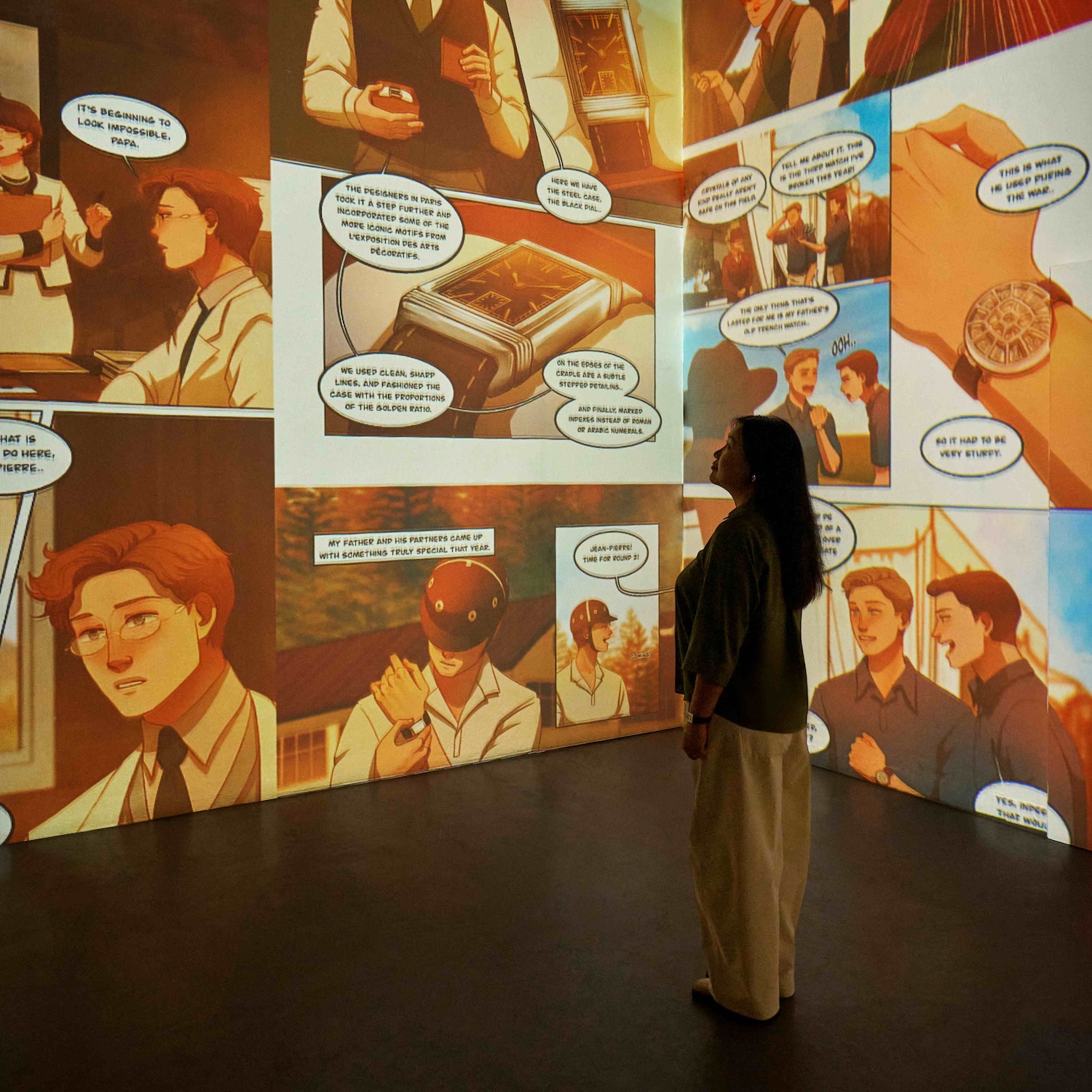 Her webcomic, titled REVERSO, is an “archive-inspired fictional narrative” that dramatises the watch’s creation, bringing its key figures – the visionary entrepreneur César de Trey and the master watchmaker Jacques-David LeCoultre – to life. The story transports audiences from the polo fields of India, where the innovative reversible case was first conceptualised, to the renowned workshops of Le Sentier. By using a graphic style influenced by manga and webtoons, Olivecoat provides a distinctly Eastern lens on a Western tale, proving that comics, or the ‘9th Art,’ are a constantly evolving and serious art form.