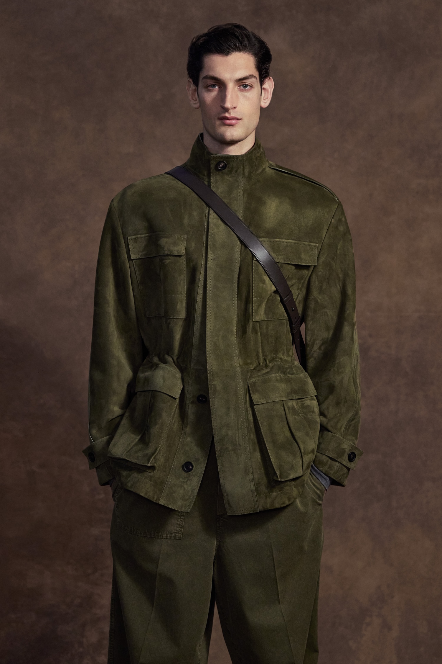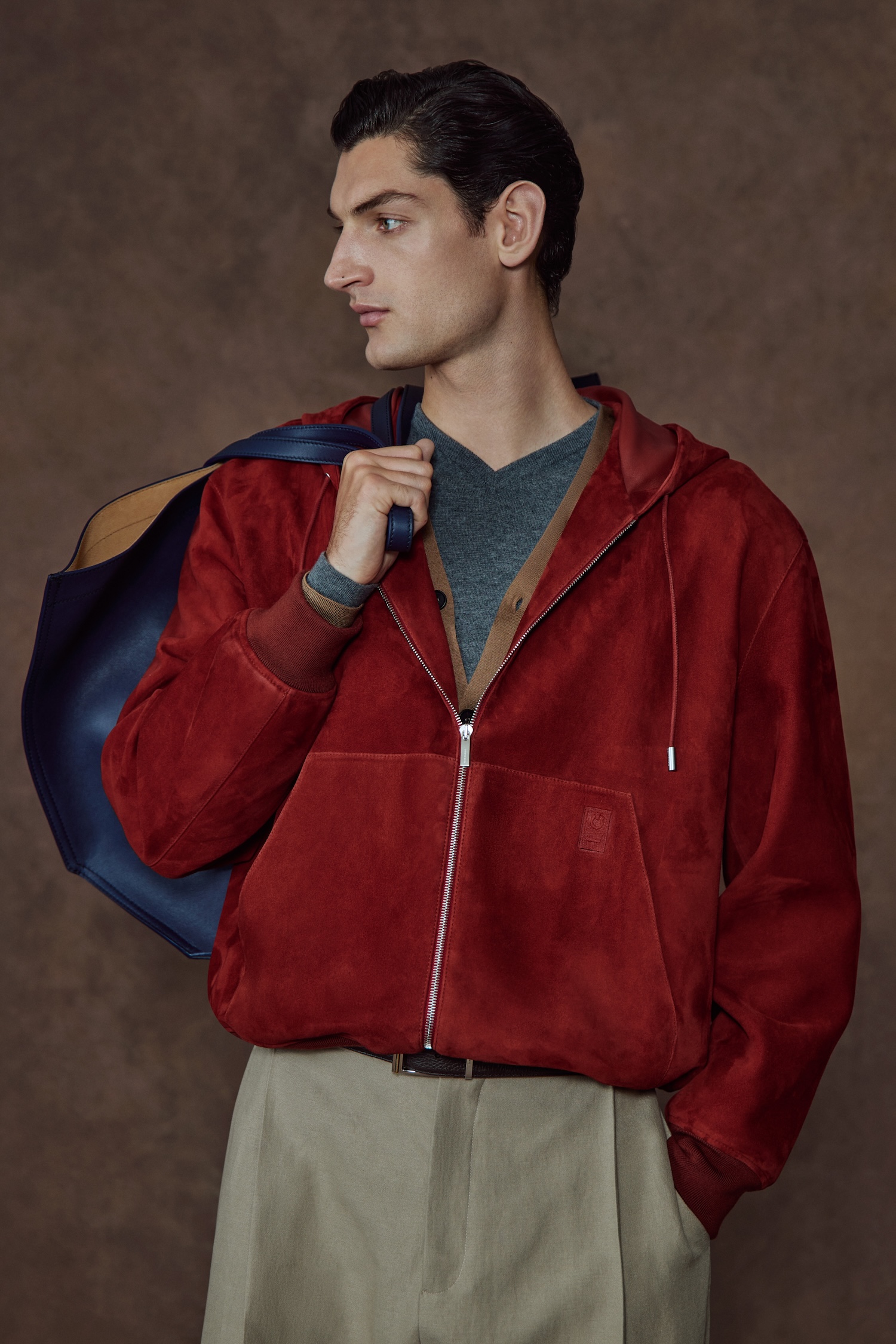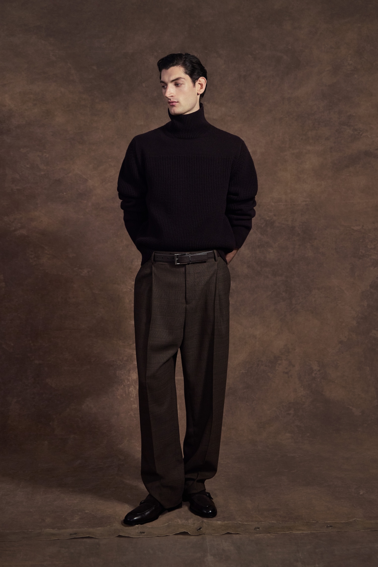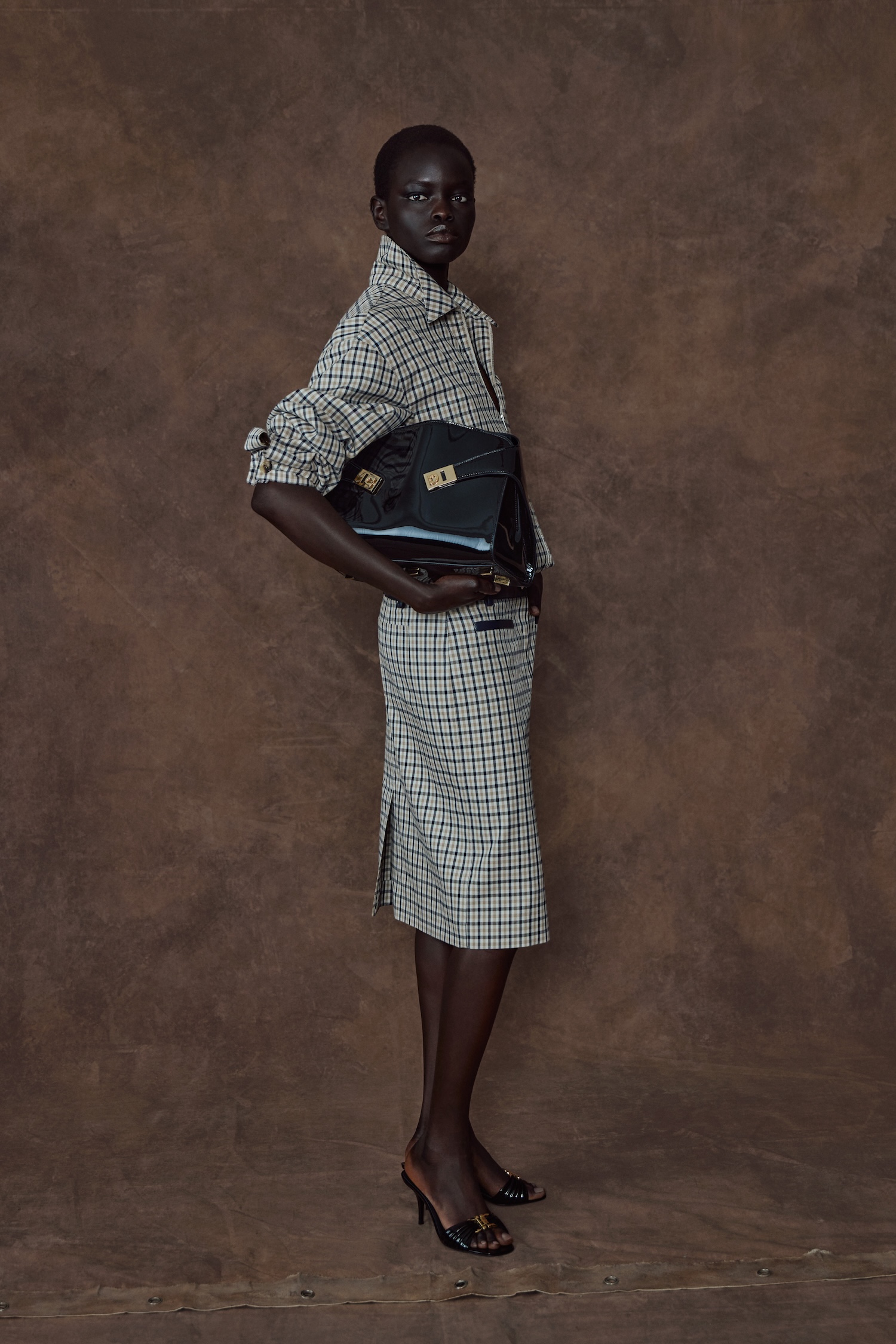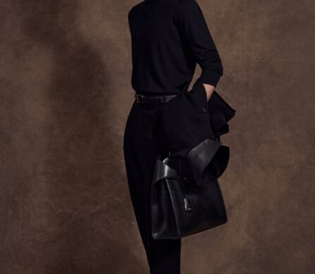 Of course, the accessories are the real headline here. The East-West bag trend has officially docked at Ferragamo. The beloved Hug bag and the double Gancini flap have been stretched into sleek, horizontal shapes that tuck perfectly under the arm. It is a subtle tweak that completely changes the attitude of the bag, making it feel modern and edgy. For those craving texture, the Soft Hug arrives in a tactile grosgrain, while a woven leather hobo bag serves as a reminder of the Florentine craftsmanship powering the whole operation.