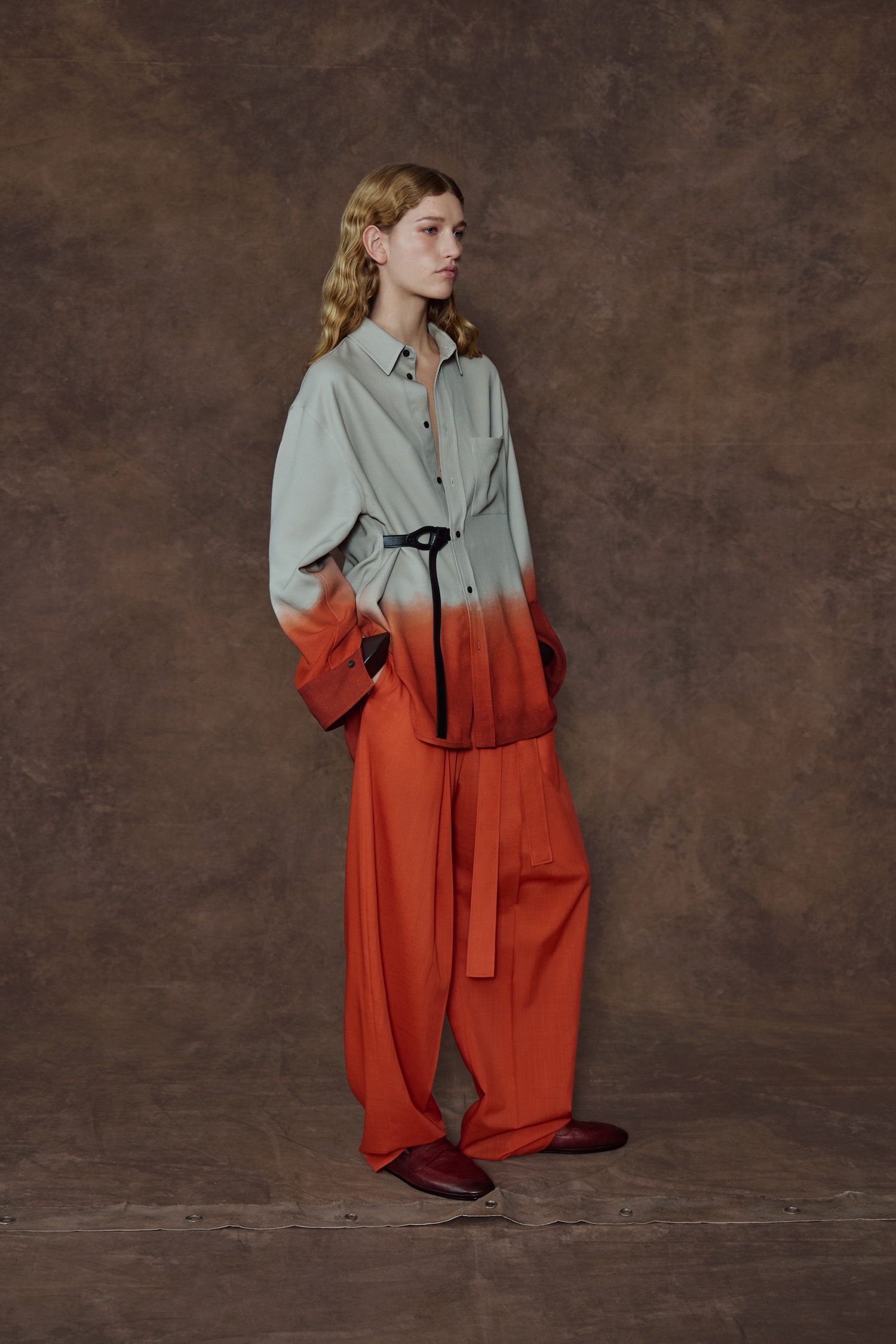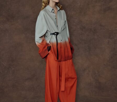 You spot it in the knotted fastenings that replace traditional buttons and the metal eyelets puncturing the knitwear like hardware on a hull. He has even introduced a mix of sailor and mandarin collars, blending naval tradition with a refined, global traveller aesthetic. The colour palette tells the same story: bold Caribbean blocks meet degrade prints that look as though the tide has bled into the fabric, mimicking an endlessly expansive horizon.