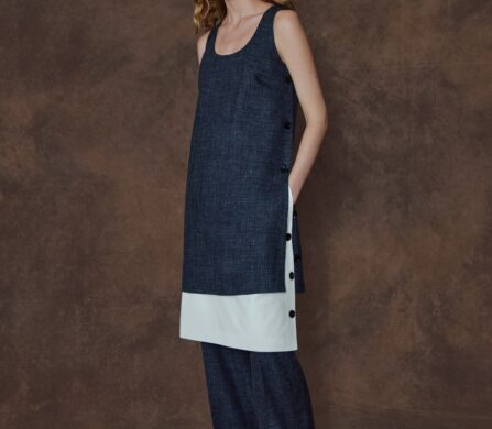 Davis is obsessing over the mechanics of sailing this season: “That idea of the water connecting people and places led me to looking at sailors, and the space they were navigating to discover new beginnings.”