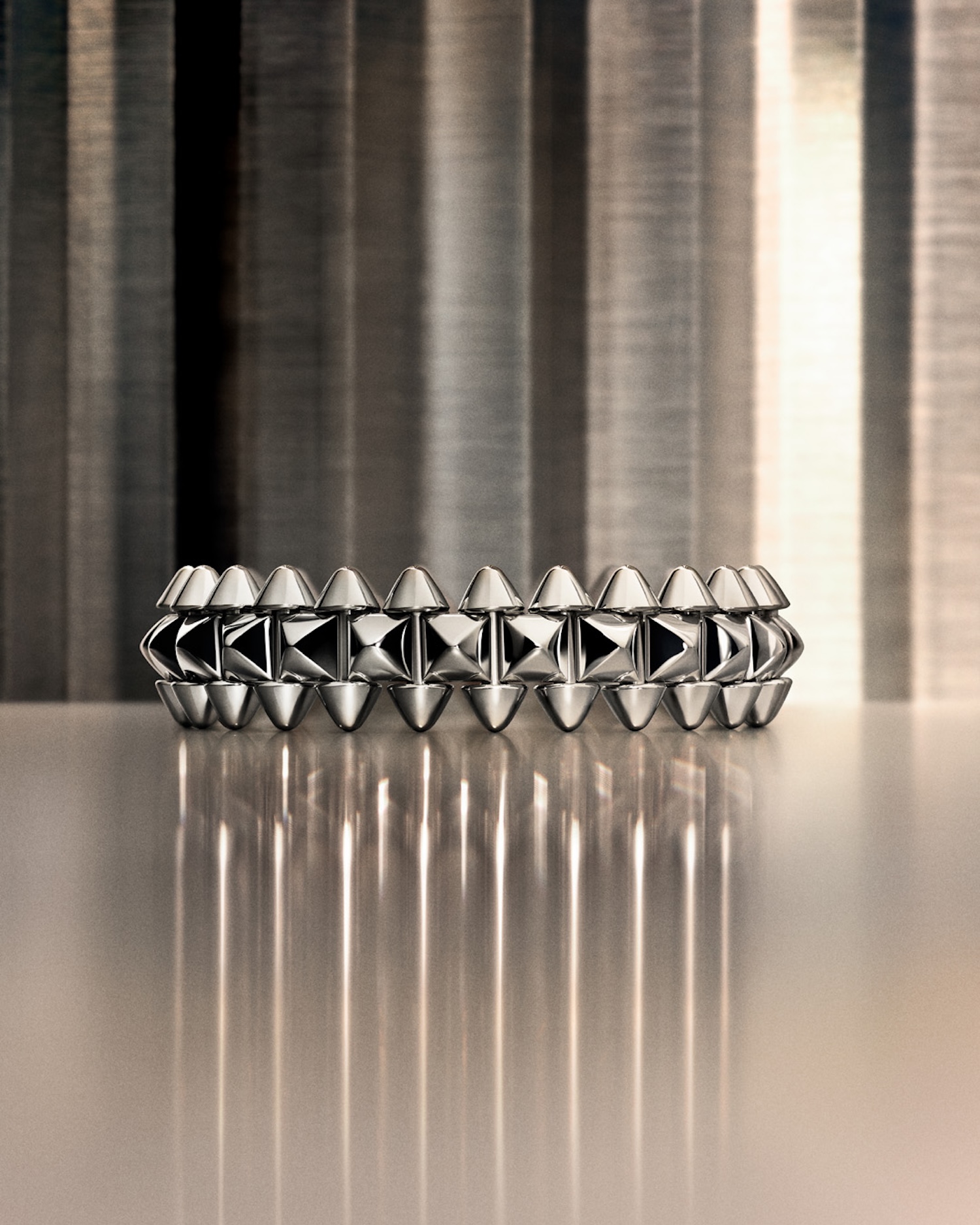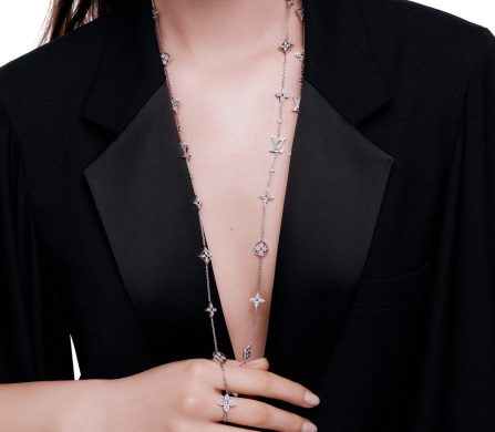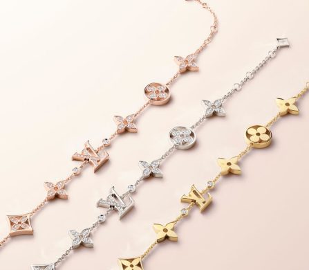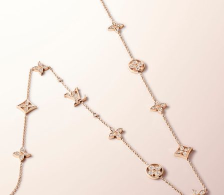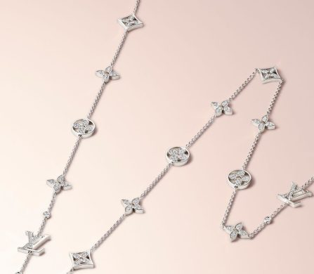 Although subtle, the additions strike like lightning: two long necklaces, three bracelets, and a pavé diamond ring, all designed to be worn alone or layered, depending on the mood. The necklaces, available in white or pink gold, drape the Monogram motif with diamond accents, giving the collection’s signature curves a more elongated, modern feel. There’s a lightness to them, an understated glamour that renders them flawless to the eye.