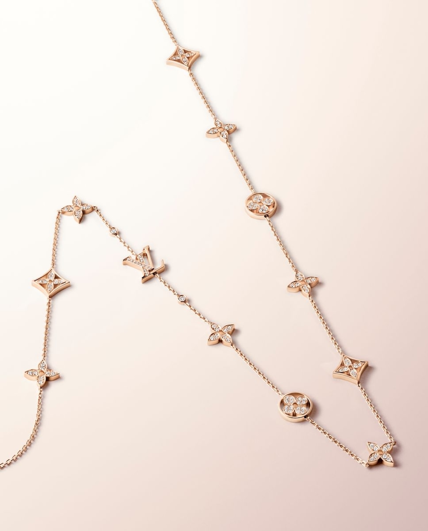 The scene-stealer might be the ring (unsurprisingly so): a pink-gold band entirely paved with diamonds, topped with a Monogram flower in slim, tapered petals so finely cut they feel almost weightless.