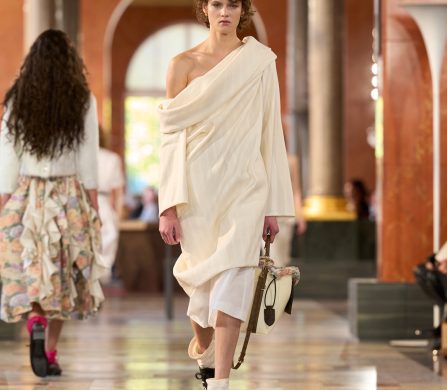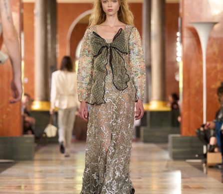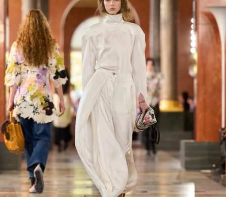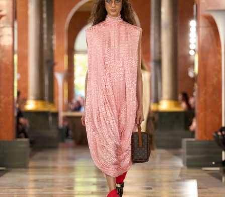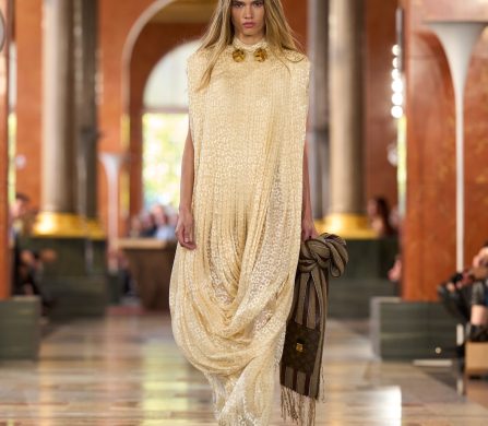 It’s odd to feel like you’ve walked into someone’s private life – but sometimes, that can lead to the prettiest of revelations. Louis Vuitton’s Spring/Summer 2026 show was revealing in this sense. The runway, set inside the former summer apartments of Anne of Austria at the Louvre, was flanked by walls that once belonged to royalty, but appear now draped in soft fabrics and staged as a living apartment.