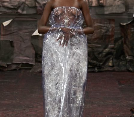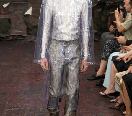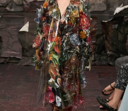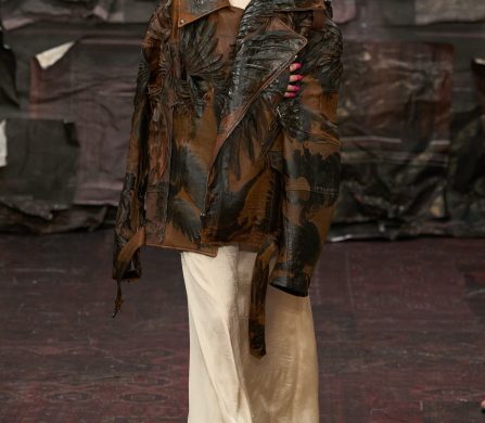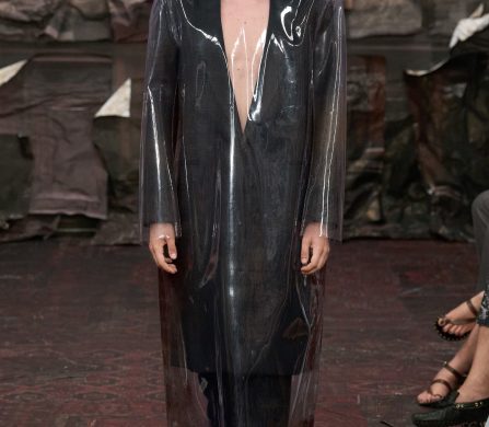 What emerges is a collection that feels both ancient and alien, devotional and defiant. Martens’s Margiela is a Gothic fairytale for the Anthropocene: saints in plastic domes, angels in upcycled biker leather, bodies sculpted and veiled, faces hidden so the handwork can sing.