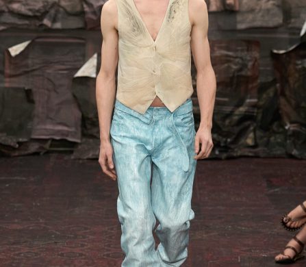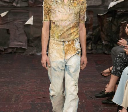 Glenn Martens isn’t easing into anything. Fresh off his seismic reinvention of Diesel and with Y/Project still in full subversion mode, the Belgian designer now takes the reins at Maison Margiela Artisanal with a collection that unfolded like a fashion exorcism — in the best way possible. Presented at Le Centquatre on a sticky July night in Paris, the show conjured a world that looked like a baroque fever dream: Flemish cathedral, medieval silhouettes, and a devotion to craft so obsessive it bordered on the spiritual (a ghostly atelier of sorts).