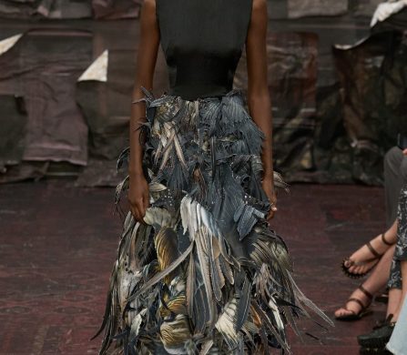 Faces disappeared under layers of tulle, organza, or scrap leather, a nod to the house’s long-standing tradition of obscuring identity — although here, it felt more like a gesture of mysticism. You weren’t looking for the wearer; you were tracing the hands behind the clothes, especially with the bridal looks.
