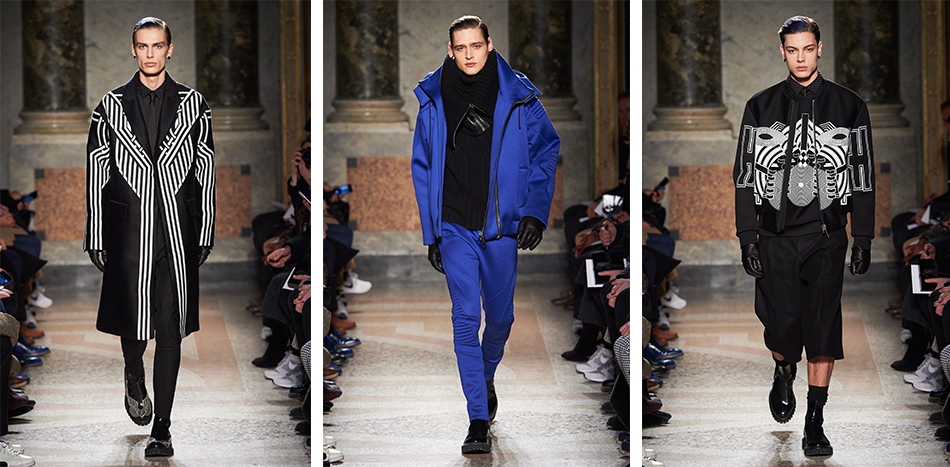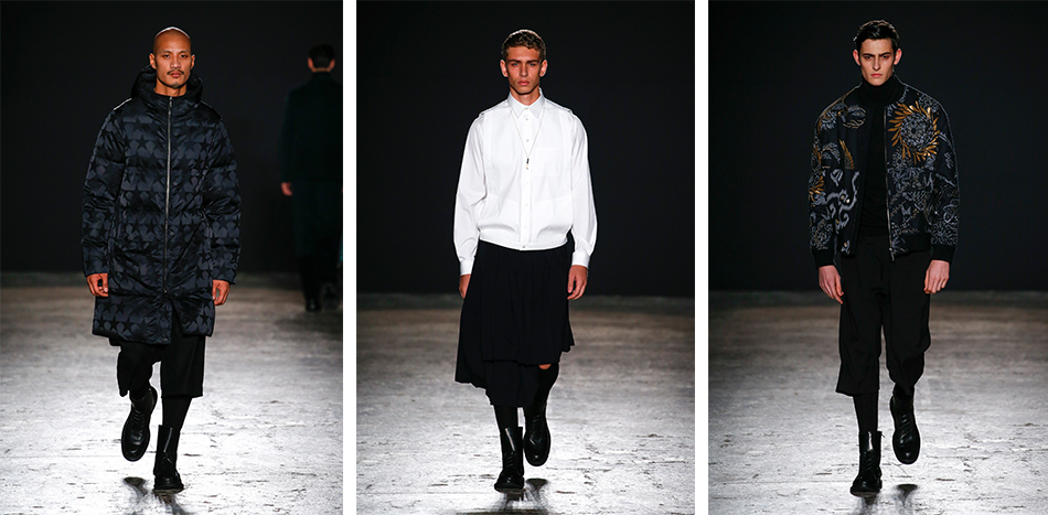 Tom Notte and Bart Vandebosch covered urban outerwear with geometric motifs for Les Hommes AW16.