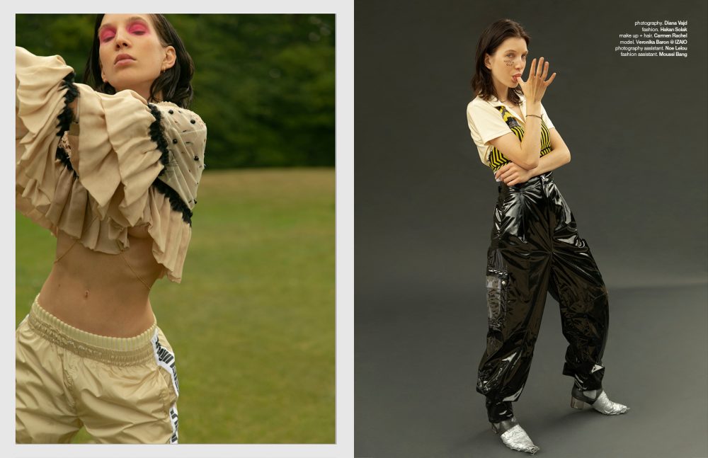 Photographer Diana Vajd transports us to a zen-like place which dictates that bold, playful colour clashes are the norm in this Schön! online editorial. Fashion by Hakan Solak sees model Veronika Baron indulge in pieces that are as androgynous as they are hopelessly romantic. Designers including Lena Voutta, Sadak and Hoertingersolak imbue the scene with an eclectic, modern feel, while natural hair and make up – including the occasional pop of colour –, both by Carmen Rachel, underscore the model’s nonchalance.