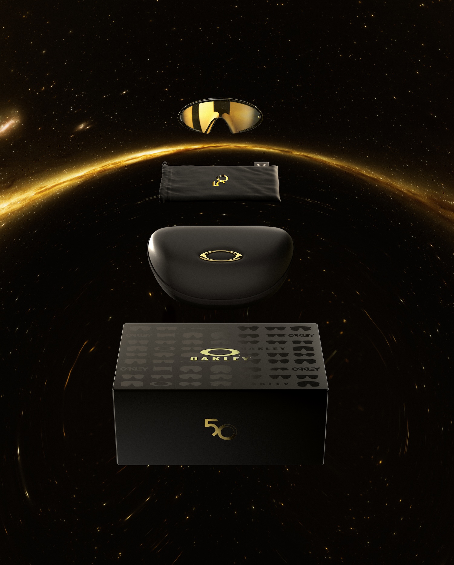 “The Oakley Ellipse 50th Anniversary celebrates half a century of Oakley innovation by taking the most iconic bit of our branding and putting it front and centre as a design element,” says Nick Garfias, VP of Design. “If you take the logo off any of our products it should be unmistakably Oakley, and the Ellipse 50th Anniversary is the clearest manifestation of that… ever.”