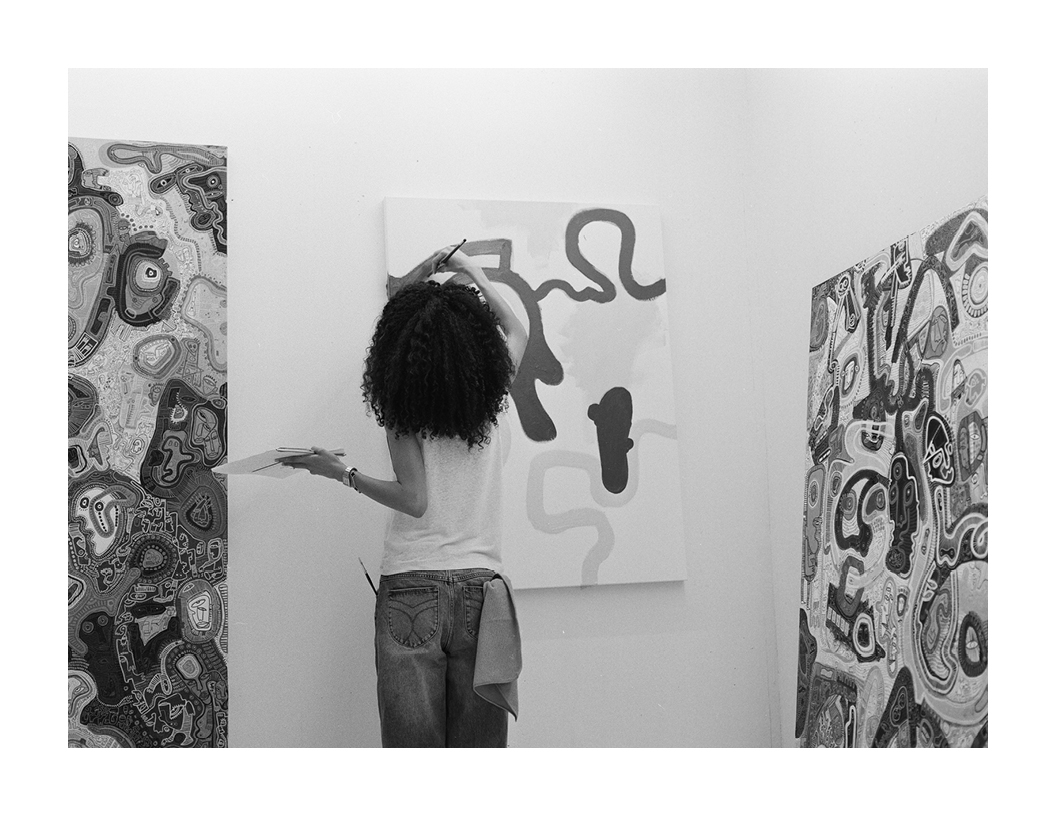 One of Sender’s most monumental projects to date is his app; an innovative programme which applies moving images to his pieces. In the future, the artist hopes to broaden its accessibility so that artists with the same AR inclinations can animate their works in real time. “I had a son last year, and want to really make a tool that is usable for everybody,” he says. According to the artist, the layer of coding also functions like armour. “Whenever a photo from a painting gets taken and is multiplied online, it feels like some of its spirit is lost. With the paintings in my show, the AR introduces some randomness into the digital frame. For instance, when a painting is seen through the lens of the app, it is paired with one of seven videos. So every user would see a different video; making the view experience feel unique each time.”