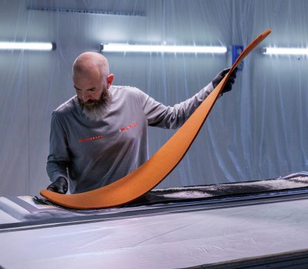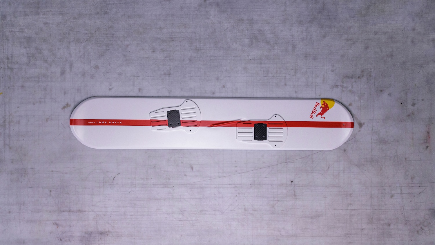 The board itself is a feat of engineering: a honeycomb core layered with carbon fibre for maximum reactivity and precision control, paired with a lightweight polyethylene base built to withstand the abrasion of metal cables. Instead of adhesives, its sleek surface carries painted graphic designs for a more seamless, aerodynamic finish. Luna Rossa’s America’s Cup know-how clearly shaped these details.