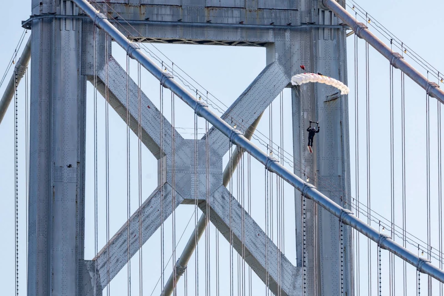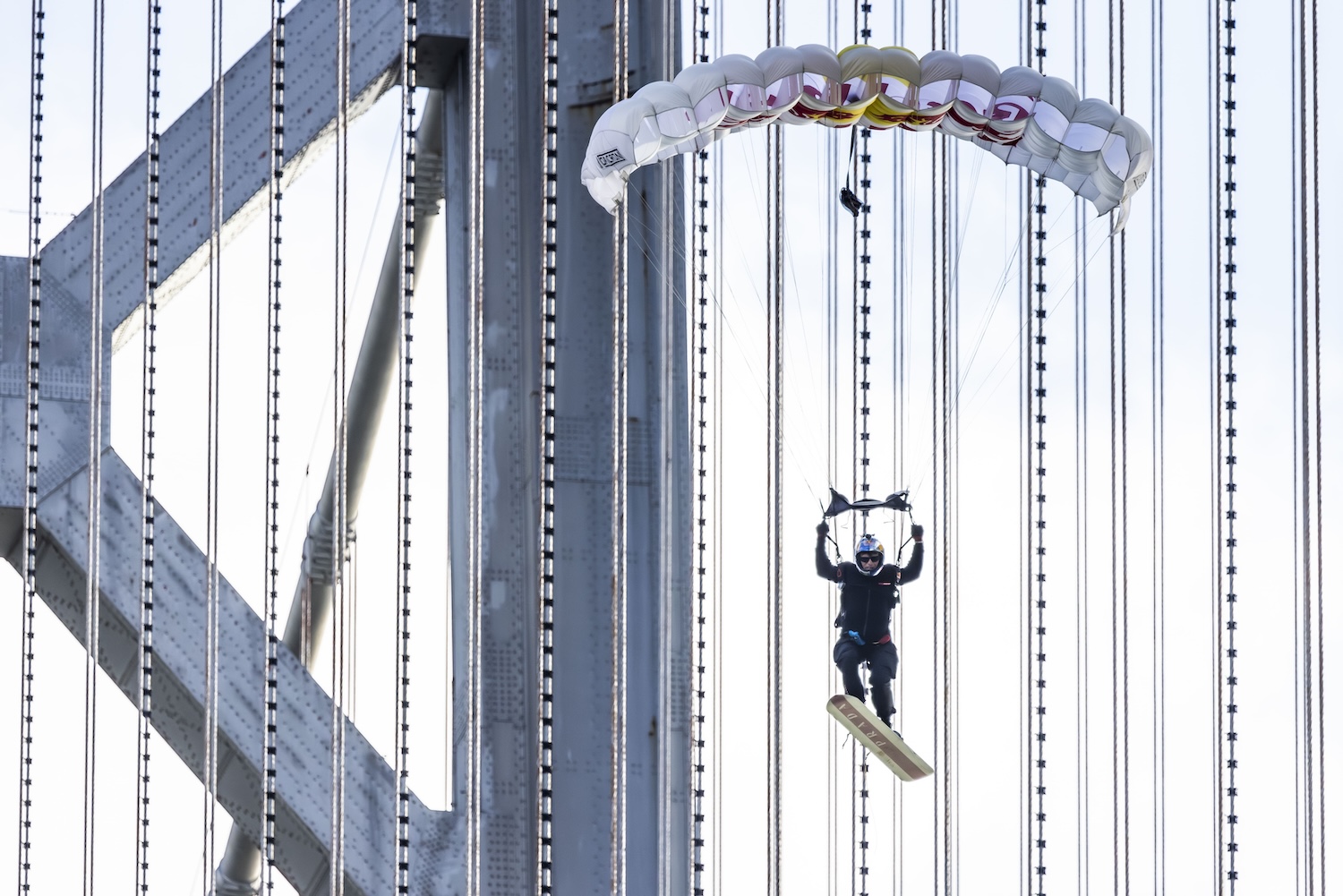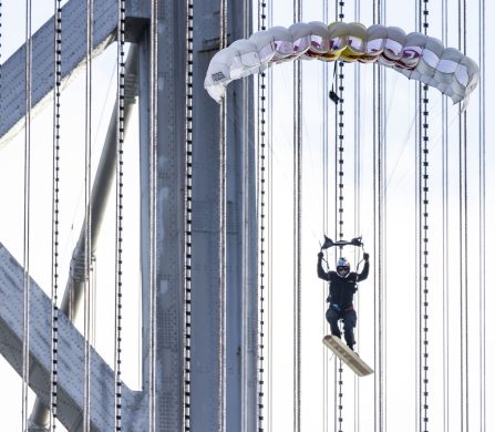 Months of preparation went into making the impossible possible. MacCormac and his Red Bull team set up a mock cable system using a 55 m crane at Skydive Elsinore in California, replicating the bridge’s curve to practice flight paths. “We crossed the rubicon of the unknown,” he said, crediting a “math magician” named Eric for calculating how to mimic cable tension and curvature.