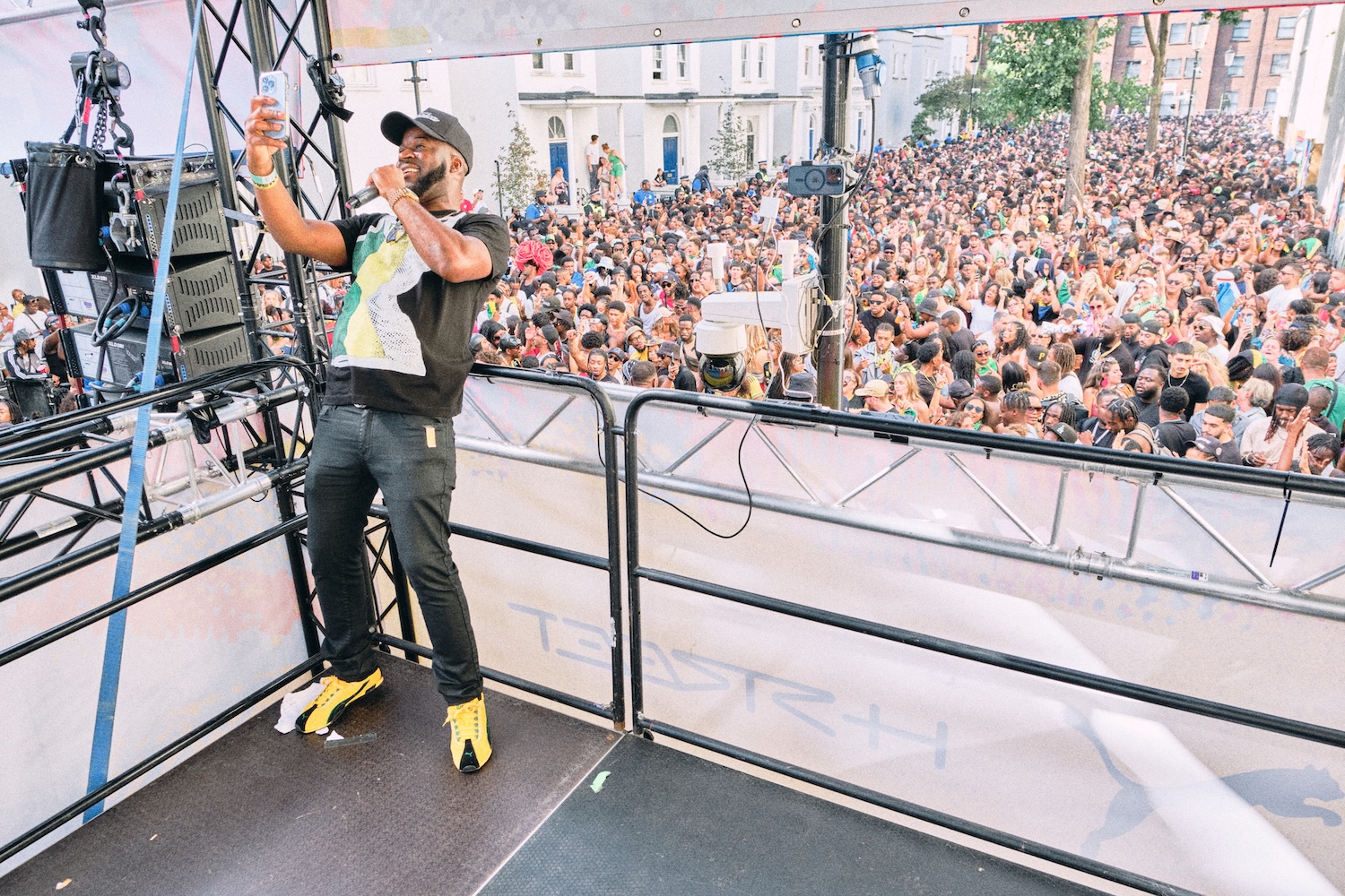 Colville Square pulsed with Caribbean pride as PUMA reimagined Rampage as a stage for Jamaican heritage and the sound system traditions that fuel the Carnival’s heartbeat. The basslines shook the pavement, while sets from Dj Mak 10, Lisa Maffia, Krept & Konan, and Romeo kept the energy soaring as waves of revellers turned the square into a sea of dance.
