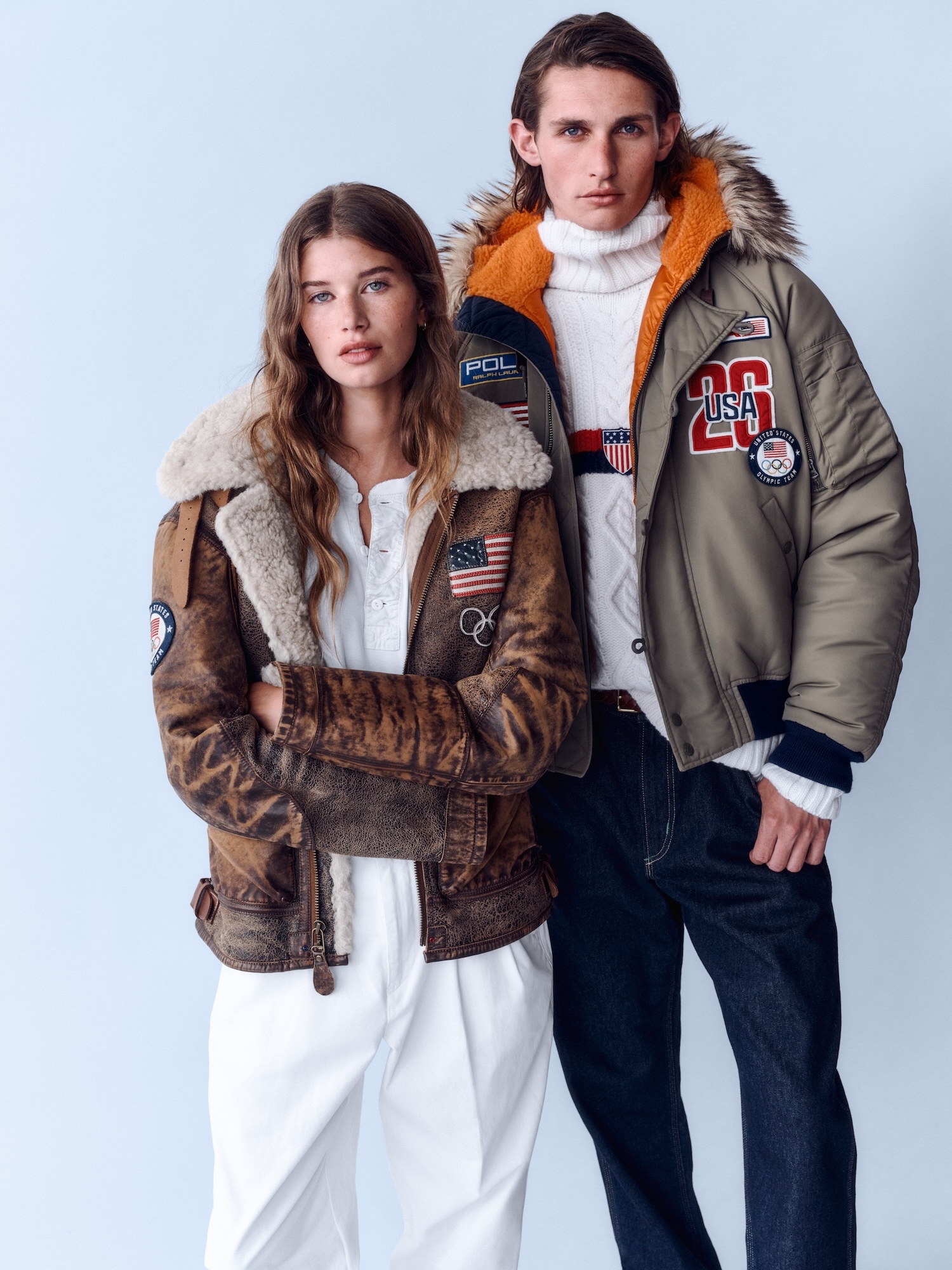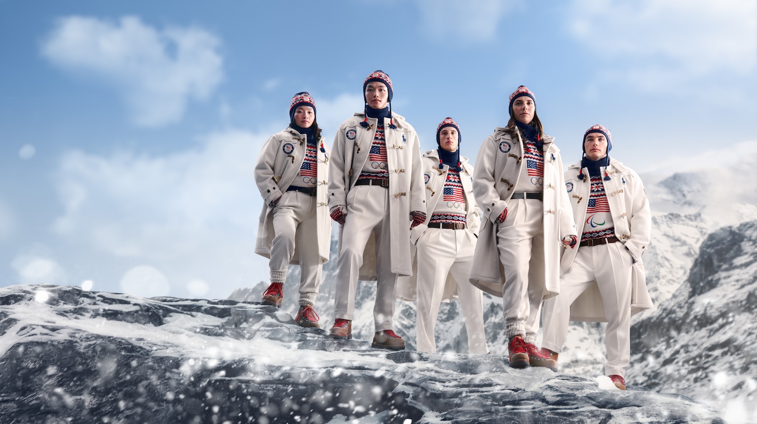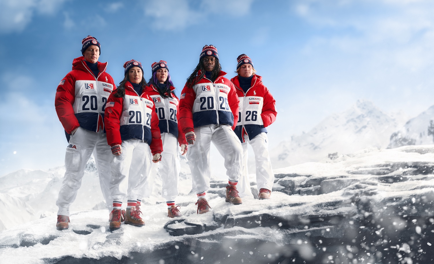 Each uniform is accessorised with rich details, including brown suede alpine boots laced with spirited red and R/W/B intarsia knit accessories. Every item worn by these boundary-breaking competitors, from young speed skating record-setter Jordan Stolz to dynamic mogul skier Jaelin Kauf, is proudly manufactured in the United States.