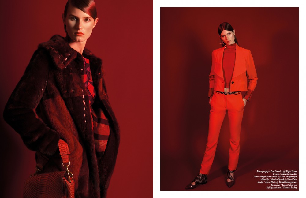 Photographer Kári Sverriss explores the full spectrum of infra-red in this Schön! online editorial, styled by Adelaida Cue Bär. Model Alicia Holtz dons garments of the colour red by Lanvin, Issey Miyake and Burakuyan.