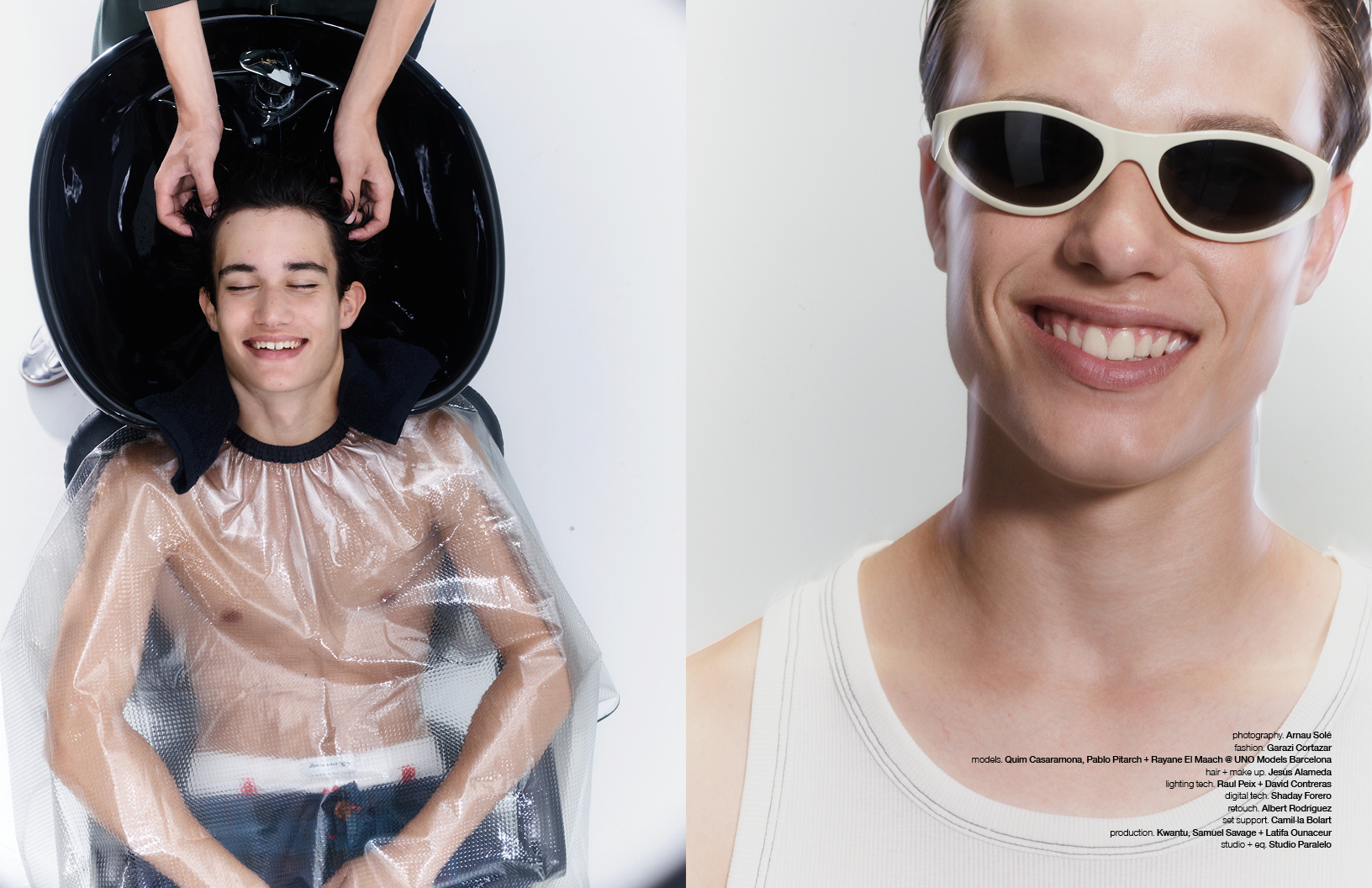 Time for a cut in this Schön! editorial where models Quim Casaramona, Pablo Pitarch and Rayane El Maach wear looks by Fred Perry, AITOR GOIKOETXEA, Comme des Garçons PLAY and others styled by Garazi Cortazar. The editorial is lensed by photographer Arnau Solé with hair and makeup by artist Jesús Alameda.
