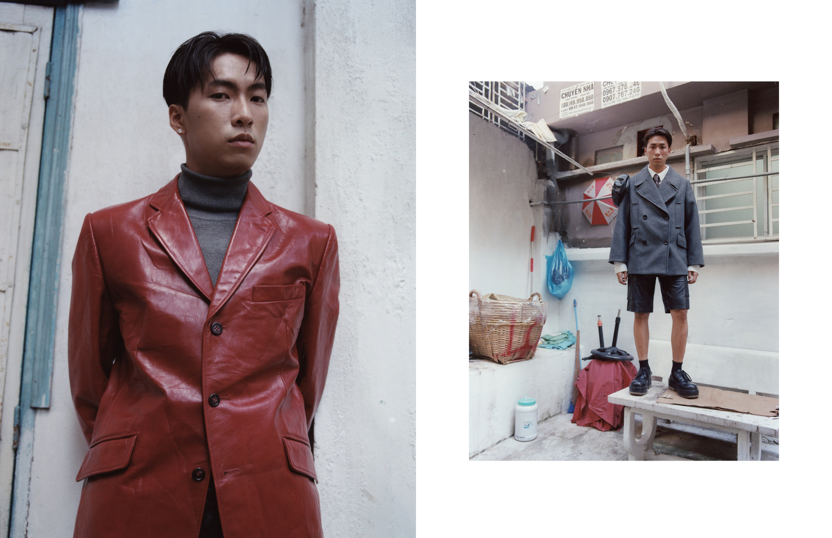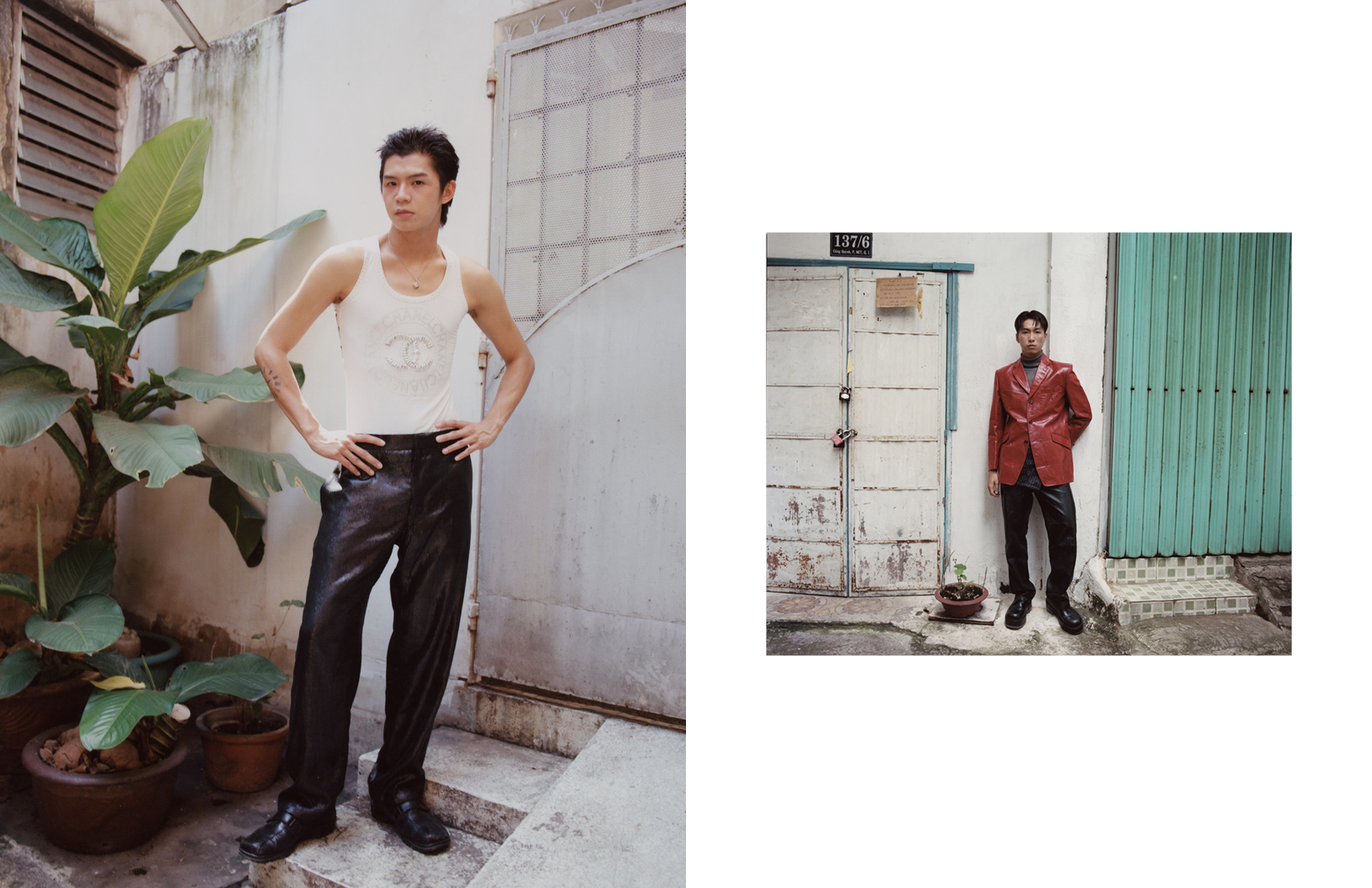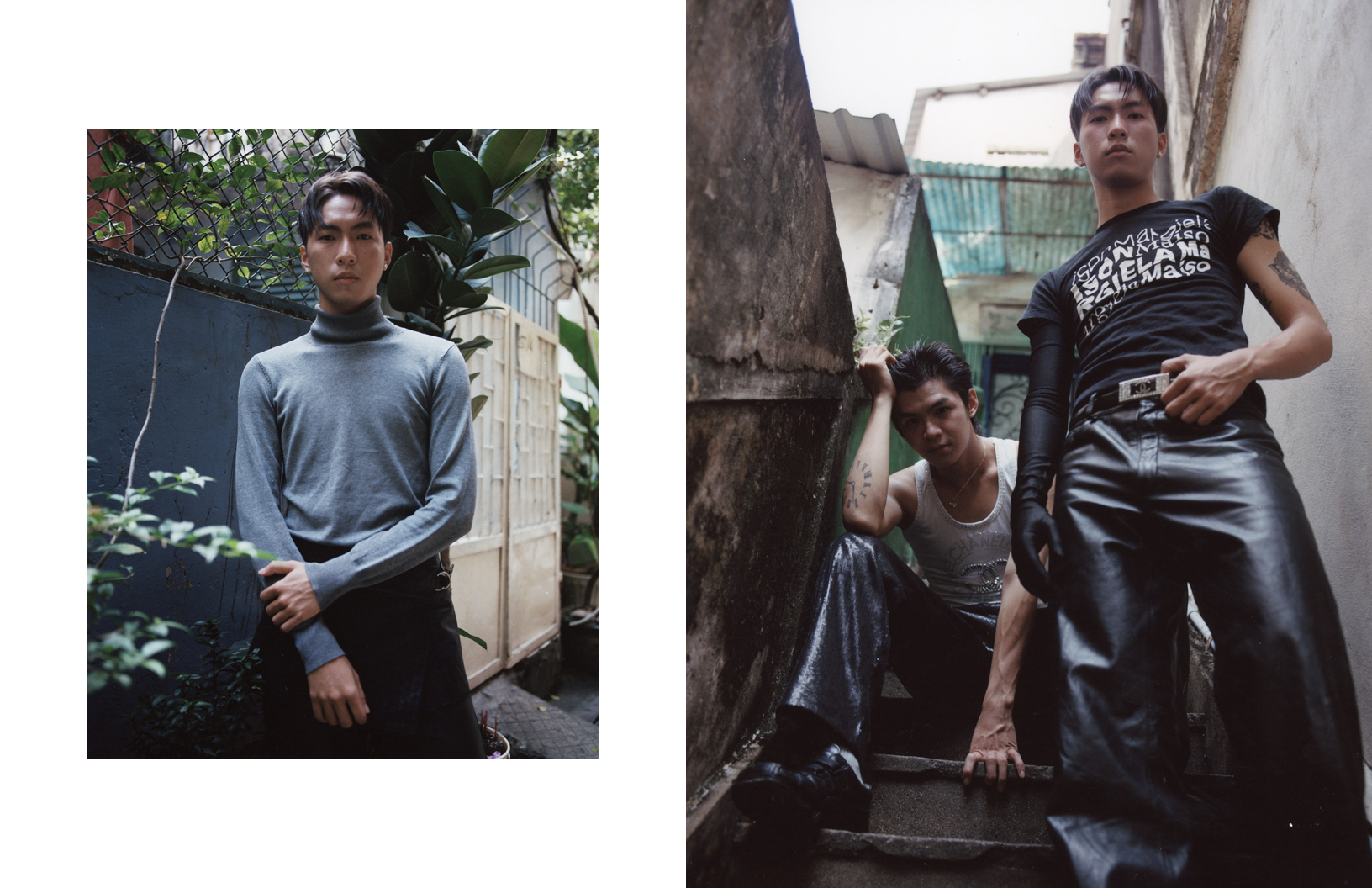 This editorial, photographed by Diane Lac, is a cultural snapshot of a generation navigating their identity in a city that’s rapidly transforming. They are the middle class, the fashion scene is booming, the rave scenes are fun, it’s post-war, and they’re celebrating all the time. The series captures the raw, unfiltered essence of these young men, blending streetwear, Western, and traditional influences, as well as DIY aesthetics. From motorbike rides through chaotic streets to quiet moments in hidden alleyways, the photographs reflect the duality of Saigon: a city rooted in history yet pulsing with the energy of exciting change.