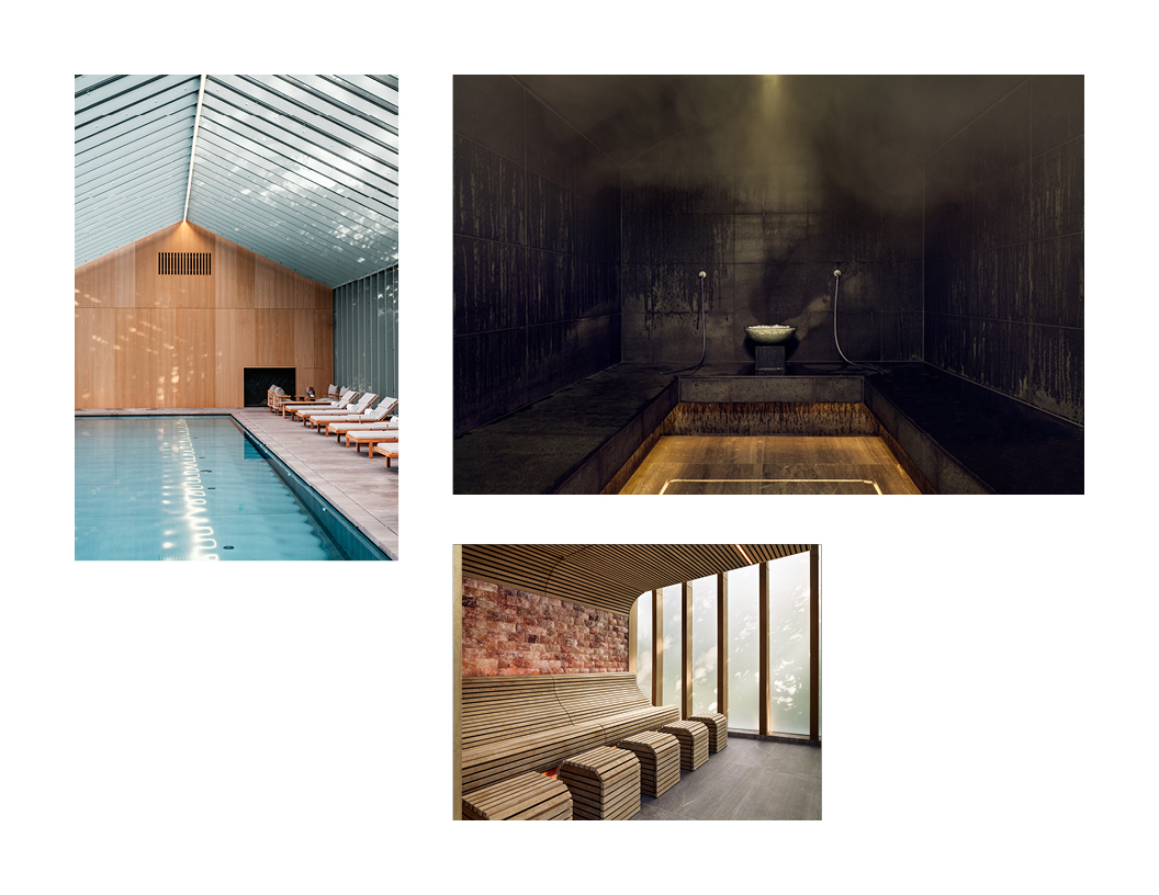 We also drew inspiration from the building’s history as a hospital, where light, air and space were considered essential for health. The rooms for the patients had large windows and there were many greenhouses on the site. Even the new spa is designed as a large greenhouse, connected in a simple but elegant way with a fine steel construction. Throughout, we used the same materials and craftsmanship found in the original building, especially in details like the staircases. The goal was to create a modern design that blends seamlessly with the old, without stark contrast, and to add a new chapter to the building’s story while remaining in harmony with its past.