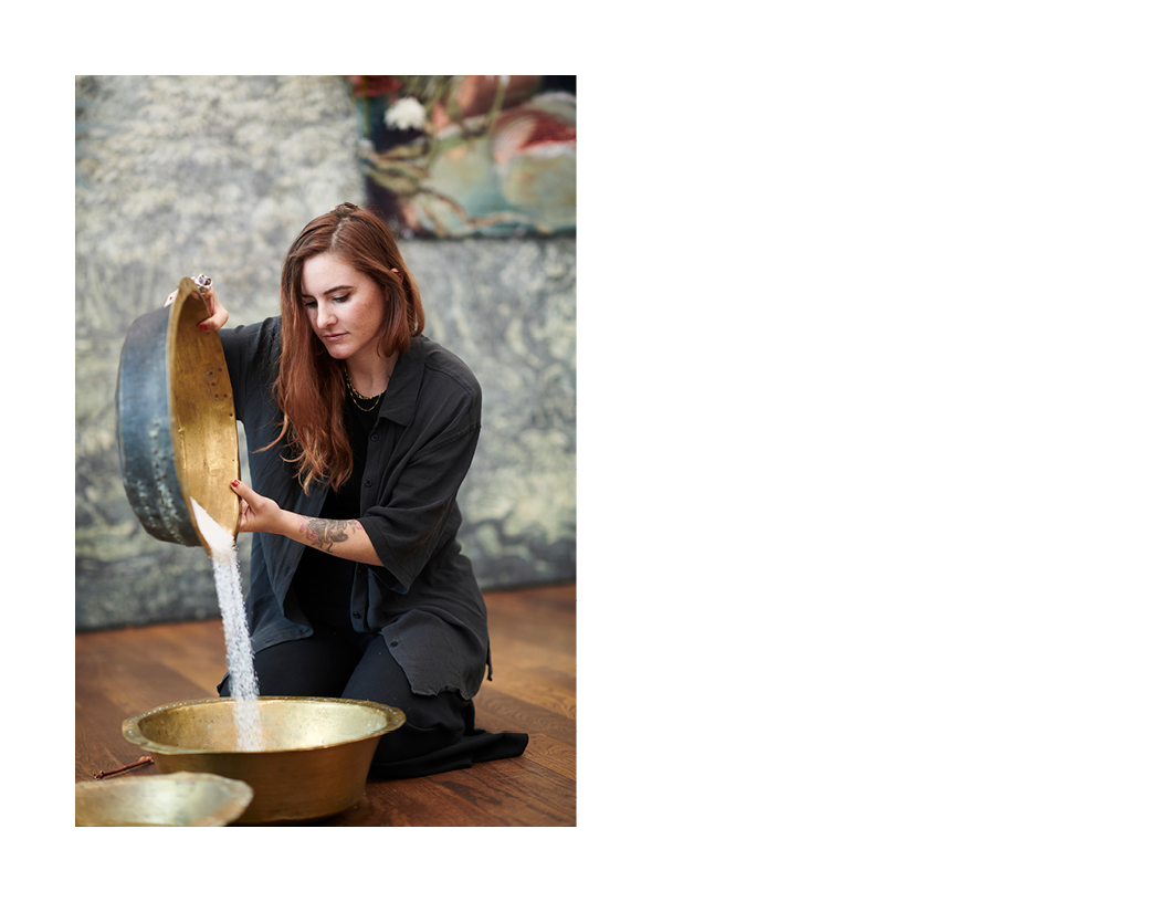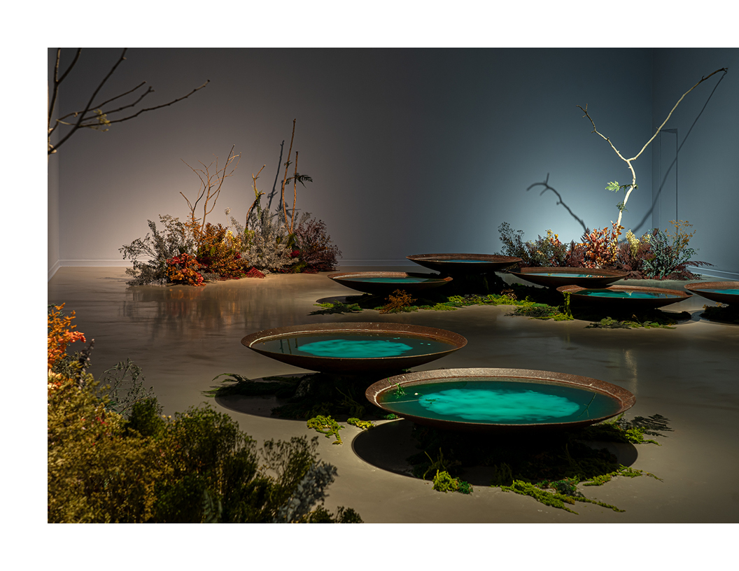 “It started with magic,” says Bianca Bondi, an artist and environmental activist, who creates ethereal sculptures and site-specific installations infused with mysticism and a deep reverence for nature. Inspired by occult traditions and artists like Hieronymus Bosch and Leonora Carrington, her work blends magic with ecological awareness, incorporating crystallized surfaces, moss, plants, and dried herbs. Originally from South Africa, Bondi initially aspired to be a pilot, but her passion for science and geography ultimately shaped her artistic practice. Her works, such as Astral Ponds—crystallized pools immersed in chemical solutions—and plant-infused installations, reflect both her scientific background and her belief in nature’s transformative power. A lifelong fascination with Wicca has further influenced her approach, reinforcing her commitment to environmental activism.
