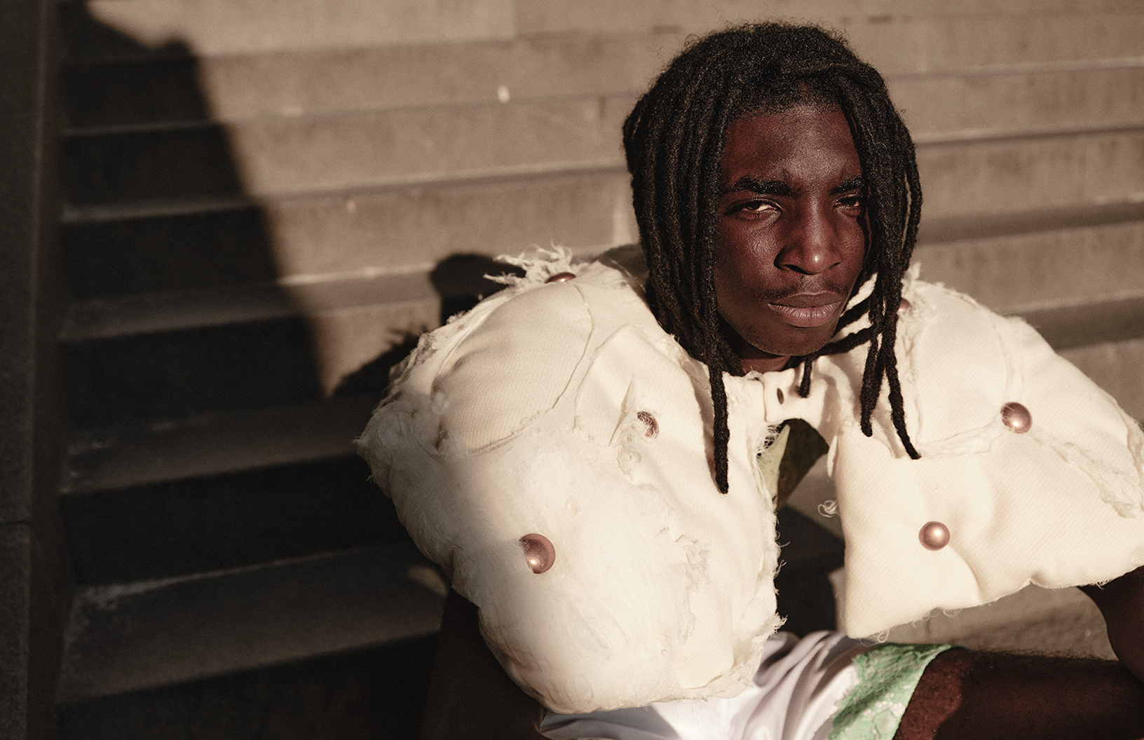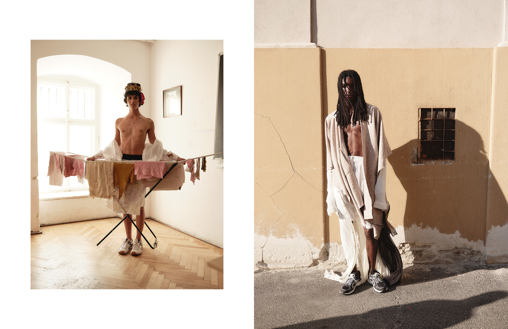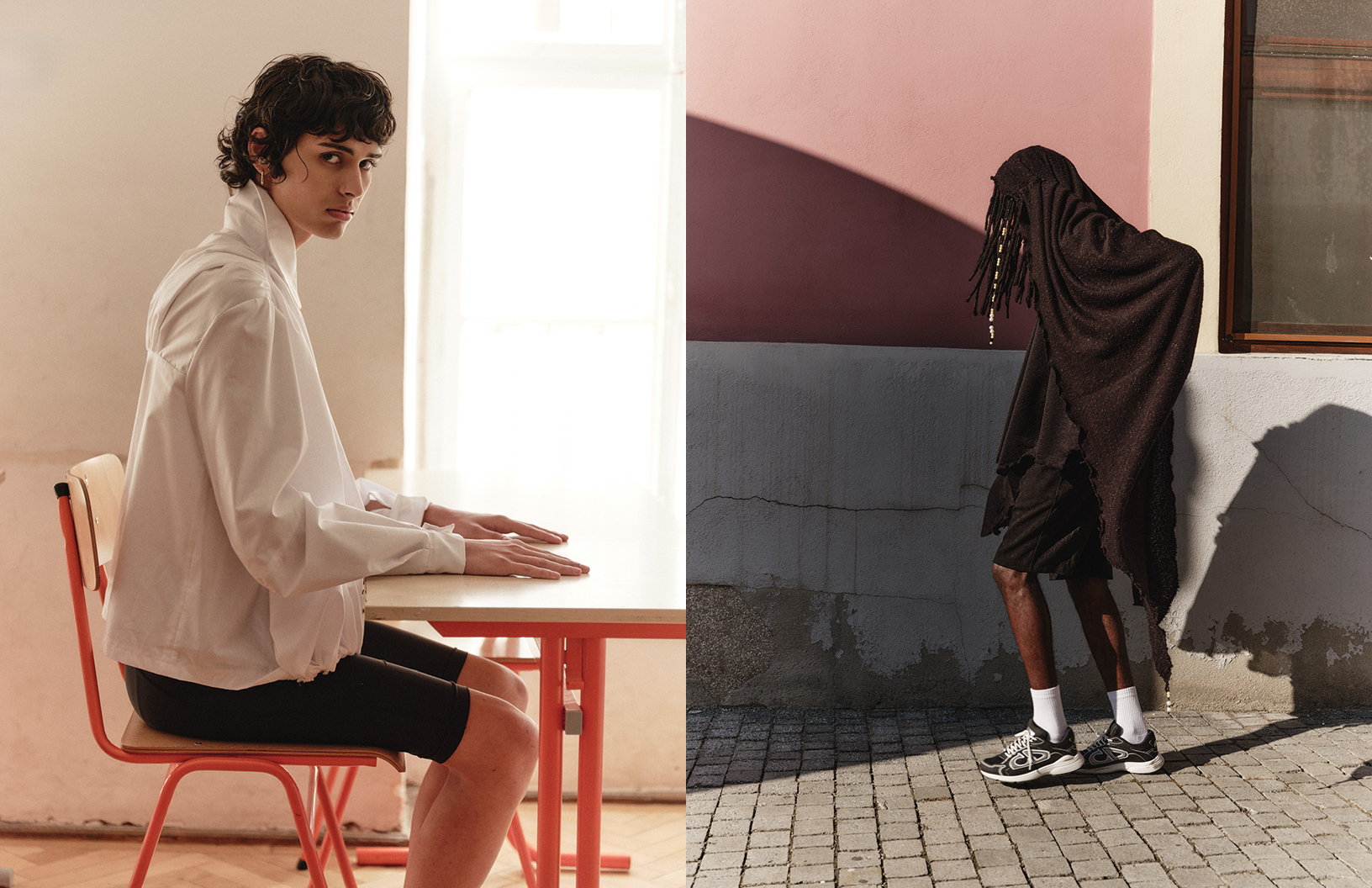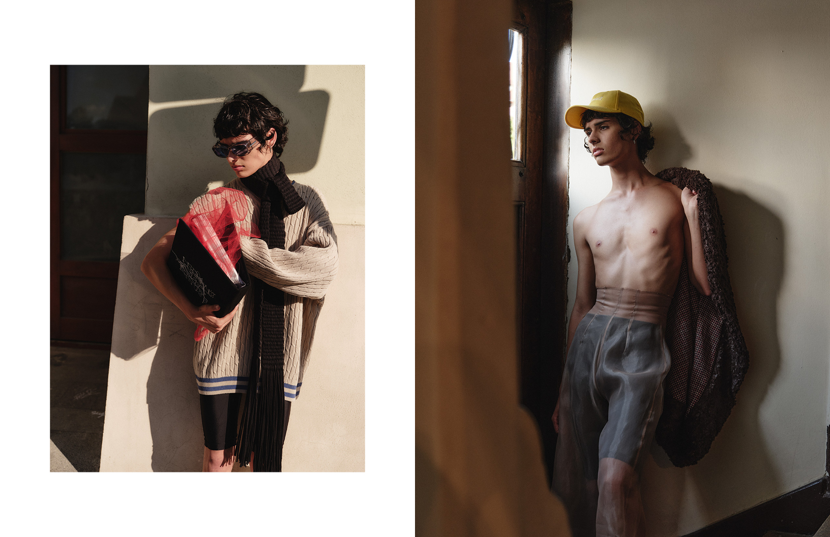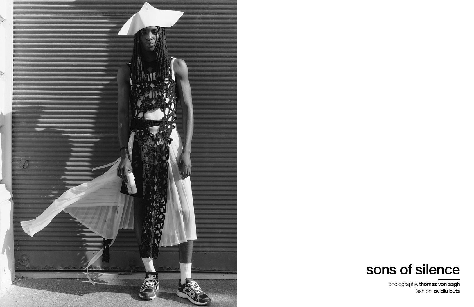 The language of stillness speaks louder than words in this Schön! editorial photographed by Thomas Von Aagh with stylist Ovidiu Buta dressing models Iustin and Alvin in looks by Victoria Turcu, Onder Azime, Blanka Gotic and others, with hair by stylist Alin Crisan and make up by artist Ionut Alexandru.