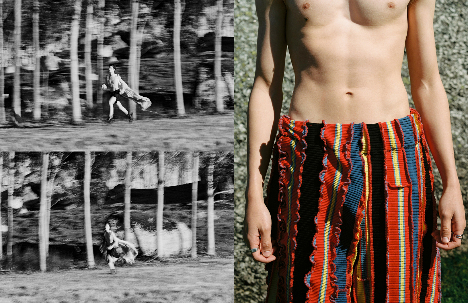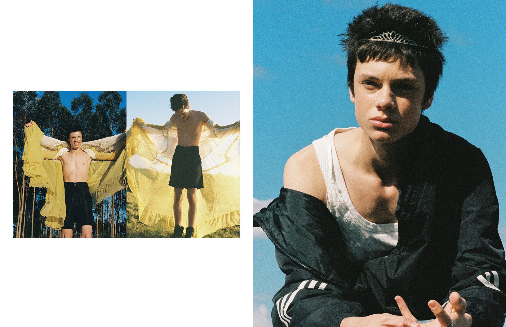 Through ethereal creative direction and styling by Tiago Miguel Andrade, the viewer is drawn into a suspended atmosphere where textures, silhouettes, and choreographed gestures dissolve the boundaries of time. Filmed in Full HD with interwoven VHS inserts, the editorial employs slow motion, image layering, and natural light to emphasize the tactility of each look. Every sequence is meticulously composed to reflect dualities: strength and fragility, movement and stillness, shadow and light, the old and the new.
