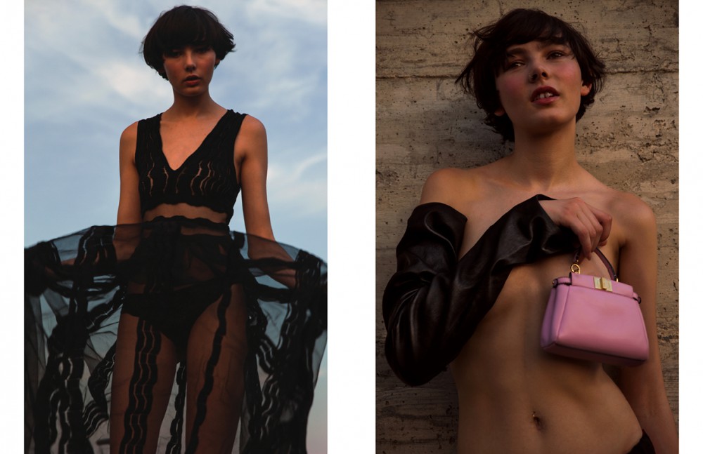 Autumn sun bathes this Schön! online editorial by photographer Riccardo Dubitante in a crepuscular glow. Stylist Yosephine Melfi adorns model Bronte in textural Emilio Pucci, Iceberg and Fendi in a seasonal special.