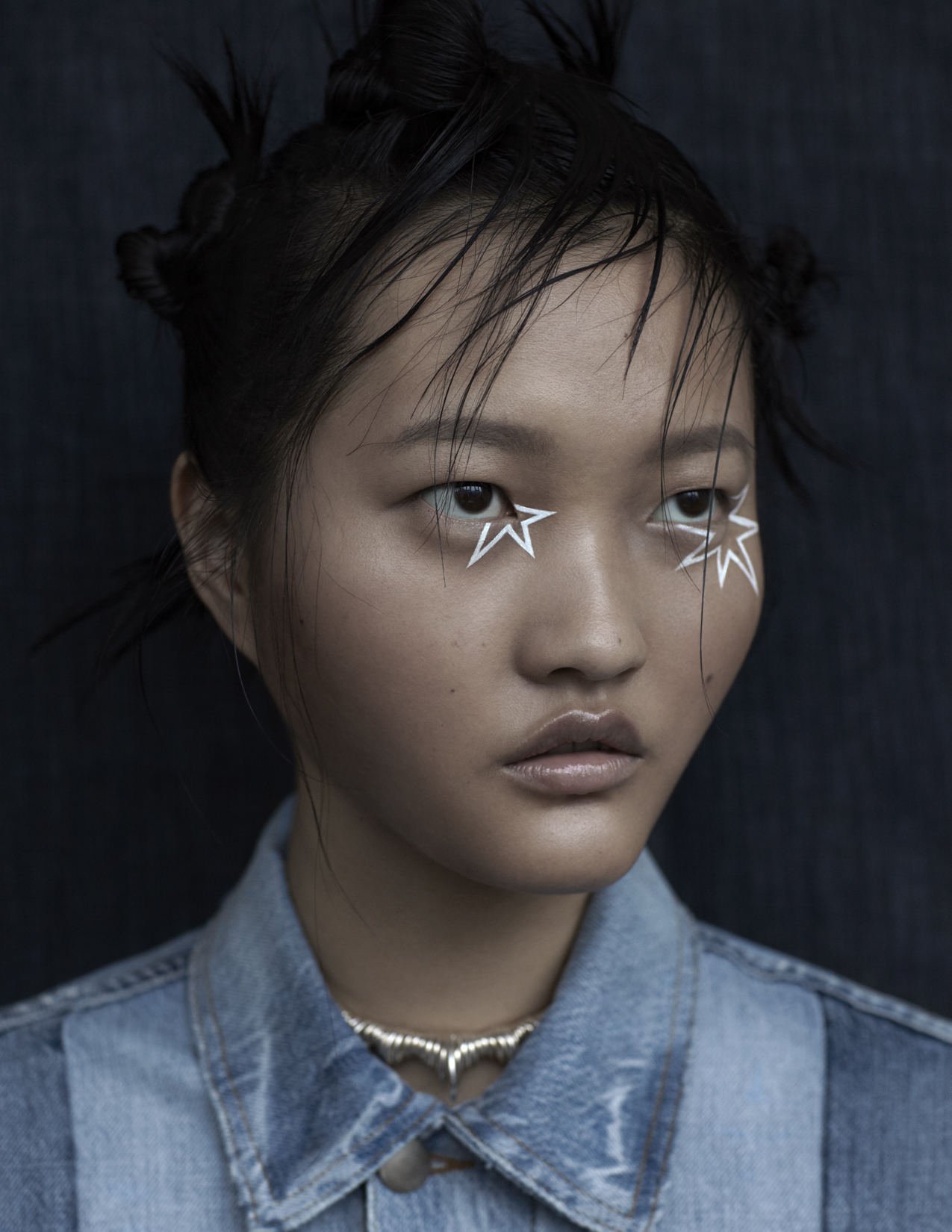 black hair, blue jeans