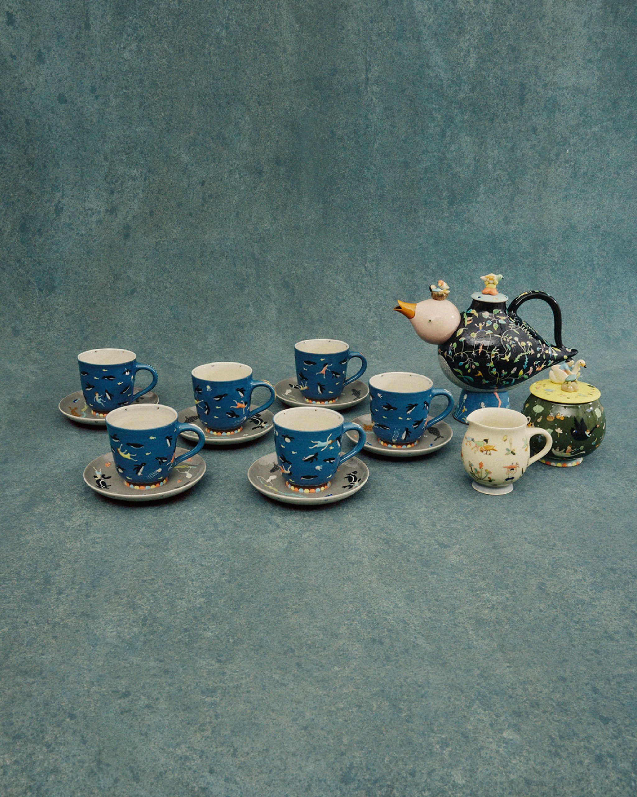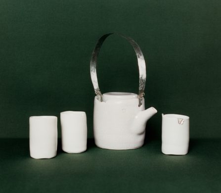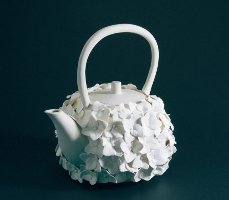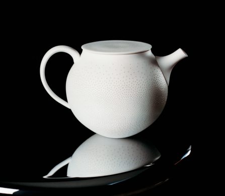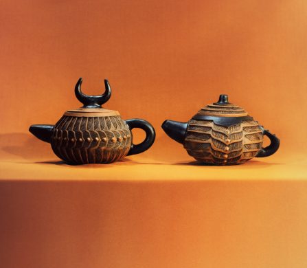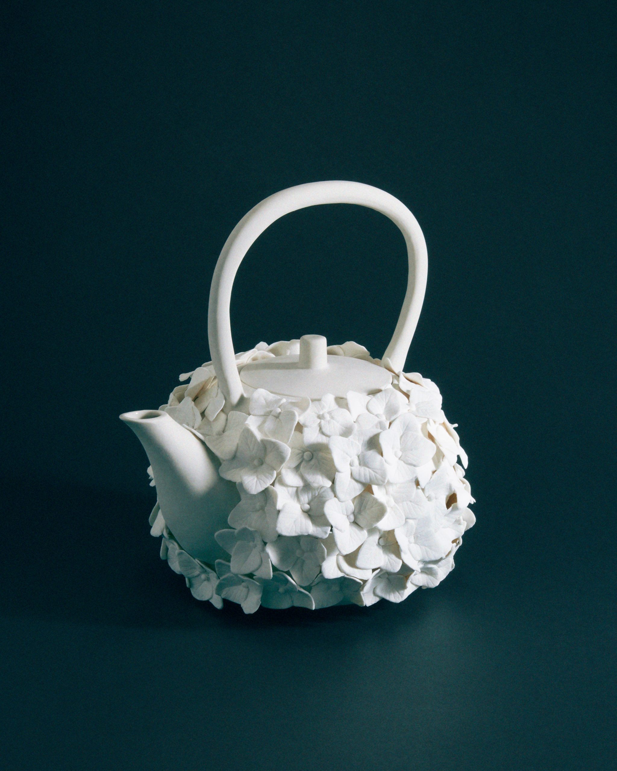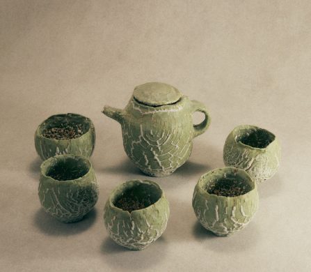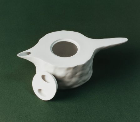 This year marks the brand’s ninth exhibition at Milan Design Week – and allows artists to come together to design a teapot in their own artistic vision. Some artists opted for a more traditional aesthetic; Akio Niisato presents a rounded teapot featuring shallow perforations that allow light to filter through and David Chipperfield contributes a striking teapot in a rich cobalt blue glaze with a copper handle, merging classic design with contemporary appeal. Conversely, the exhibition also embraces maximalism, exemplified by Dan McCarthy’s whimsical hand-sculpted teapots adorned with smiley faces and Jane Yang-D’Haene adds to the eclectic mix with her elongated teapot featuring ribbons of clay that add a sense of movement and fluidity.