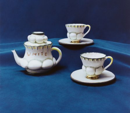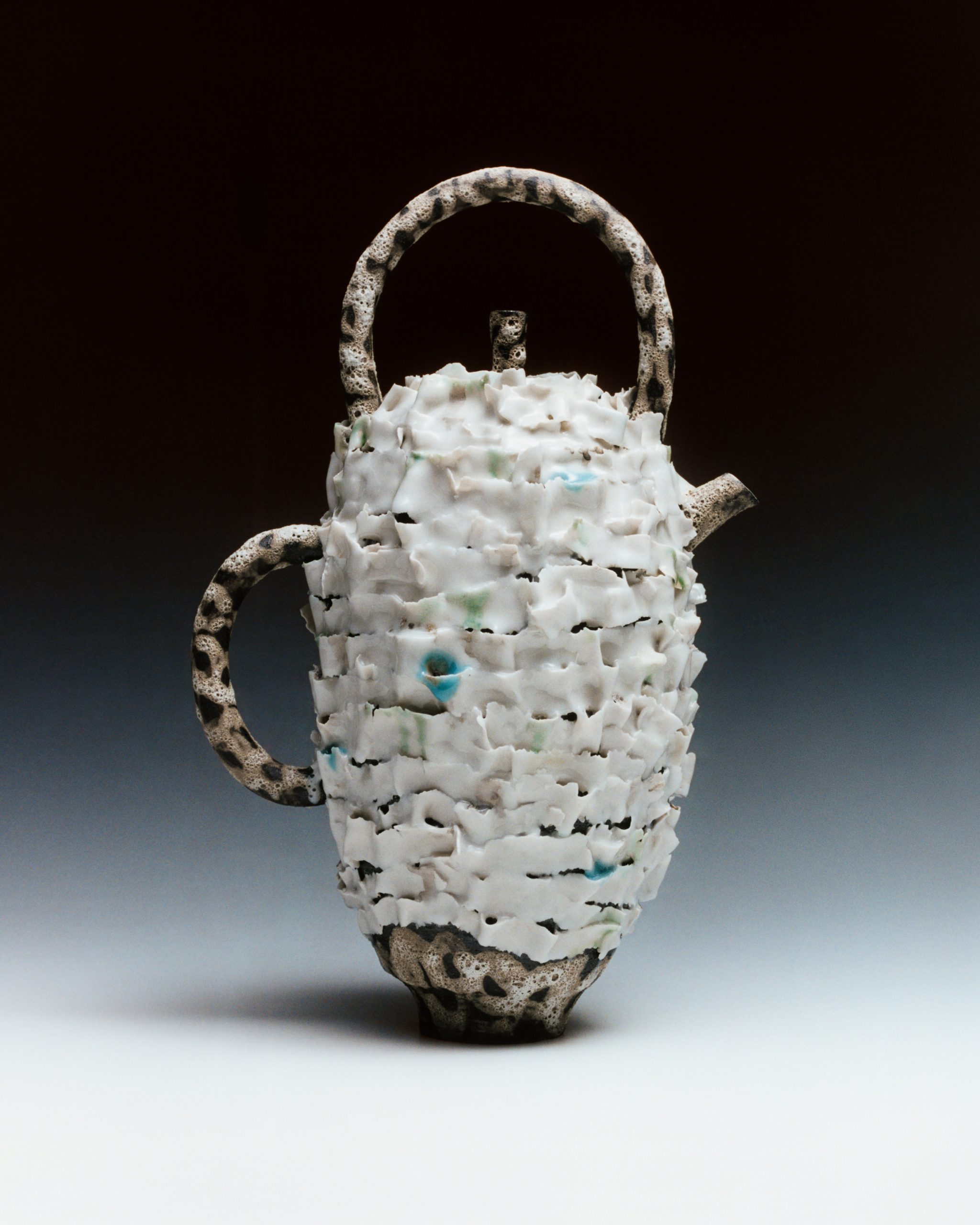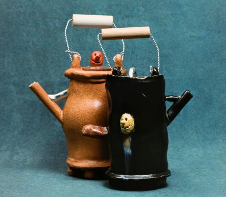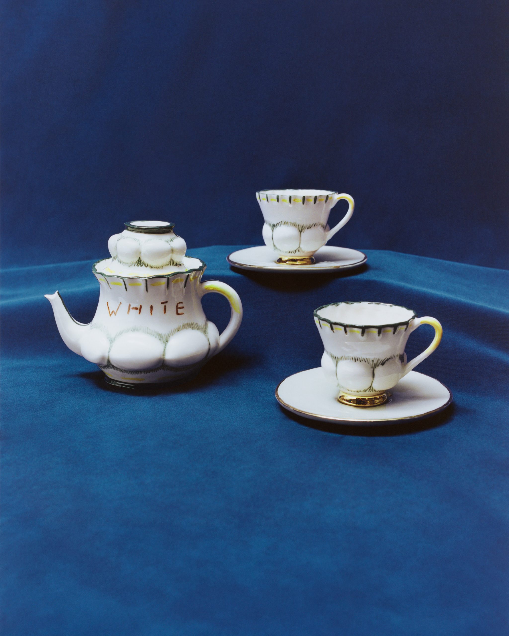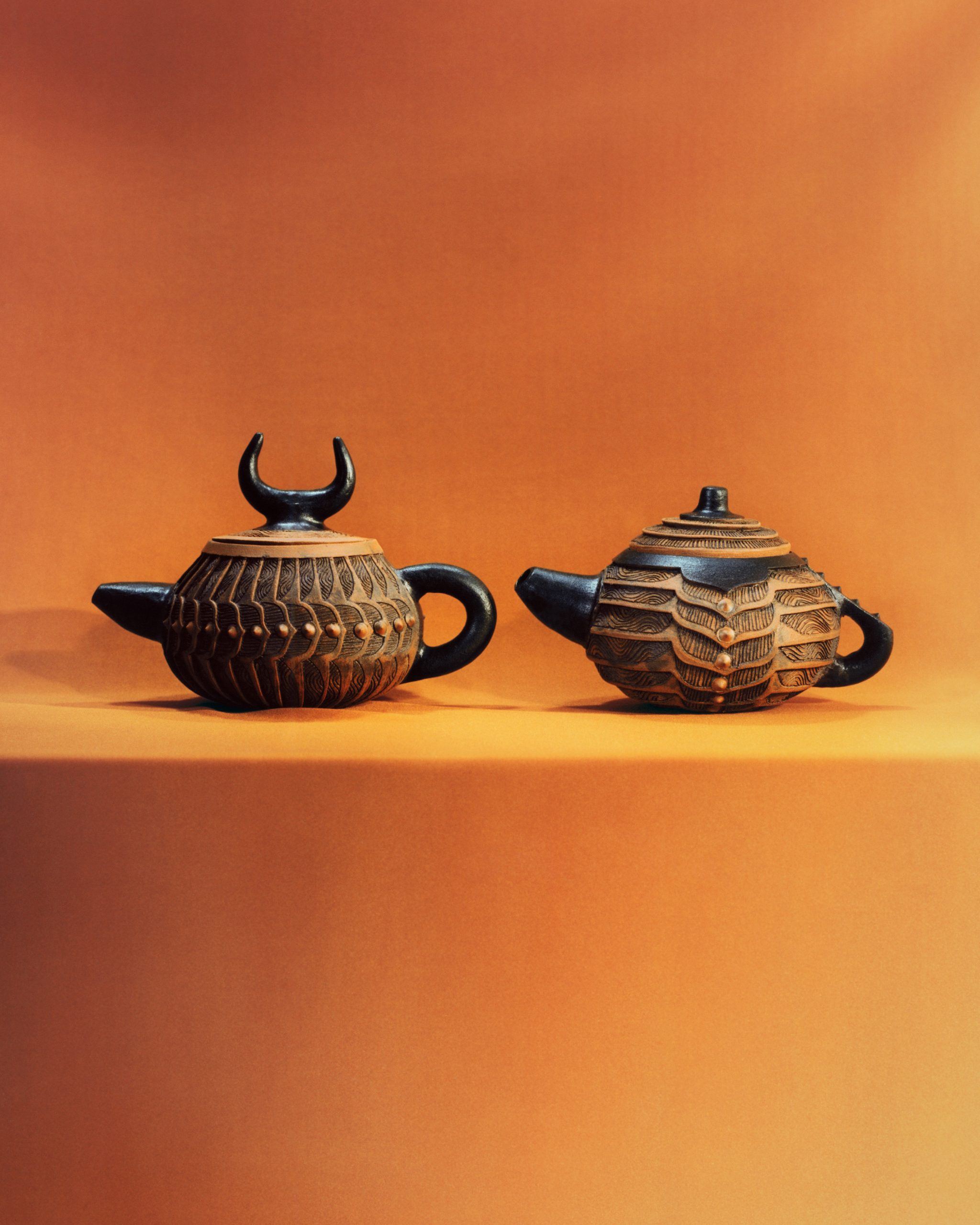 This year marks the brand’s ninth exhibition at Milan Design Week – and allows artists to come together to design a teapot in their own artistic vision. Some artists opted for a more traditional aesthetic; Akio Niisato presents a rounded teapot featuring shallow perforations that allow light to filter through and David Chipperfield contributes a striking teapot in a rich cobalt blue glaze with a copper handle, merging classic design with contemporary appeal. Conversely, the exhibition also embraces maximalism, exemplified by Dan McCarthy’s whimsical hand-sculpted teapots adorned with smiley faces and Jane Yang-D’Haene adds to the eclectic mix with her elongated teapot featuring ribbons of clay that add a sense of movement and fluidity.