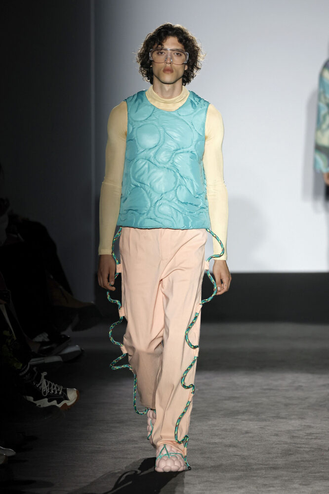 EÑAUT brings their seventh collection “Under” to 080 that gives minimalism a new definition in the world of nature and fashion’s environmental impact. Txell Miras is gearing up to celebrate almost 20 years as a label in a few years. Their new collection “Vanishing Points” is a masterclass in geometrics and contrast; boldly juxtaposing lines and colours through the use of strong pillars to show calm and peace. Dominnico brings their impact on cultural touch points to 080 for the first time in “Nenne Spring 2023” by highlighting upcycling and the importance of handcrafted garments.