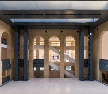 Situated in the heart of the city – at 2 Place du Palais-Royal, opposite the Louvre – the Fondation Cartier pour l’art contemporain has unveiled its new Paris location. Reimagined by architect Jean Nouvel, the 19th-century Haussmannian building’s heritage is blended with contextual contemporary architecture. The original 1855 façade has been preserved, while glass bay windows on the ground floor open the building to the city. The Rue de Rivoli arcades pay tribute to Paris’ historical architecture, and inside, five adjustable platforms can shift to eleven different heights. The space is designed as a scenographic and social environment that fosters exchange and dialogue, while thoughtfully integrating themes of urbanism, landscape, and ecology.