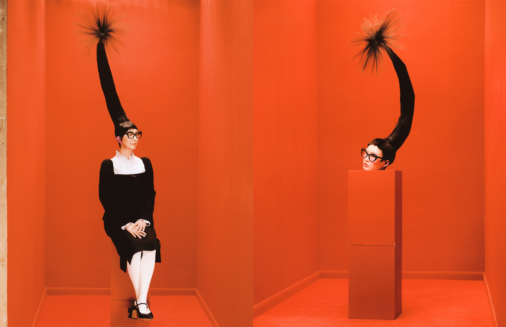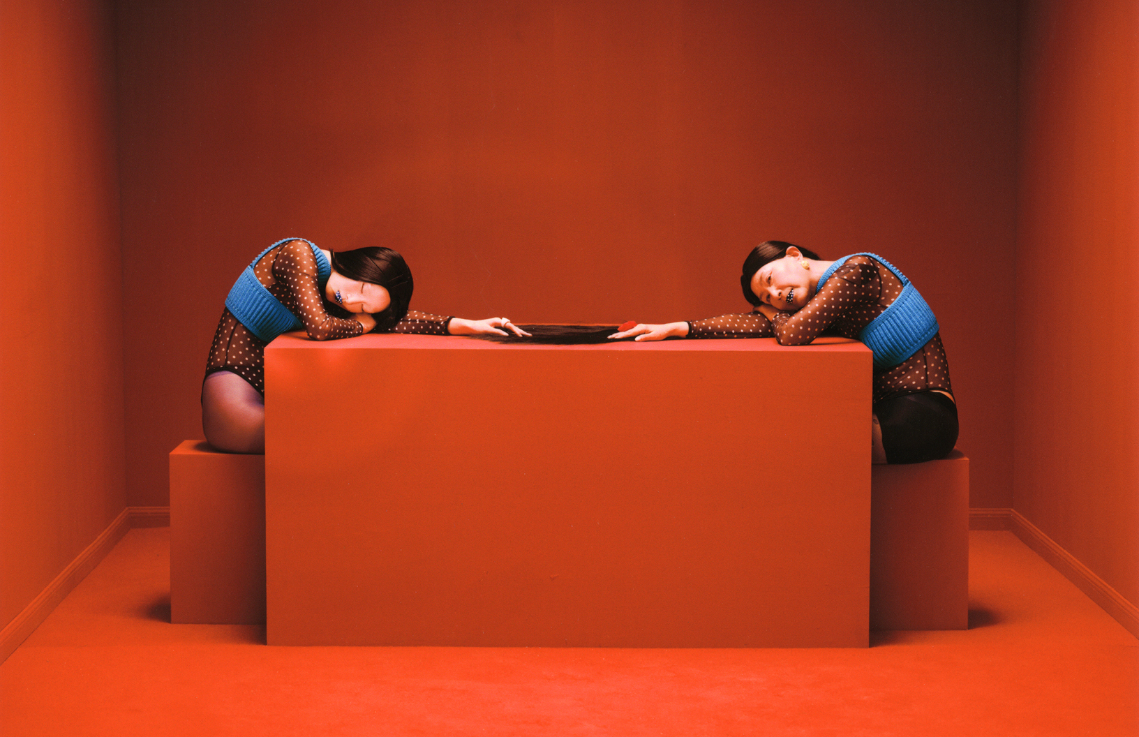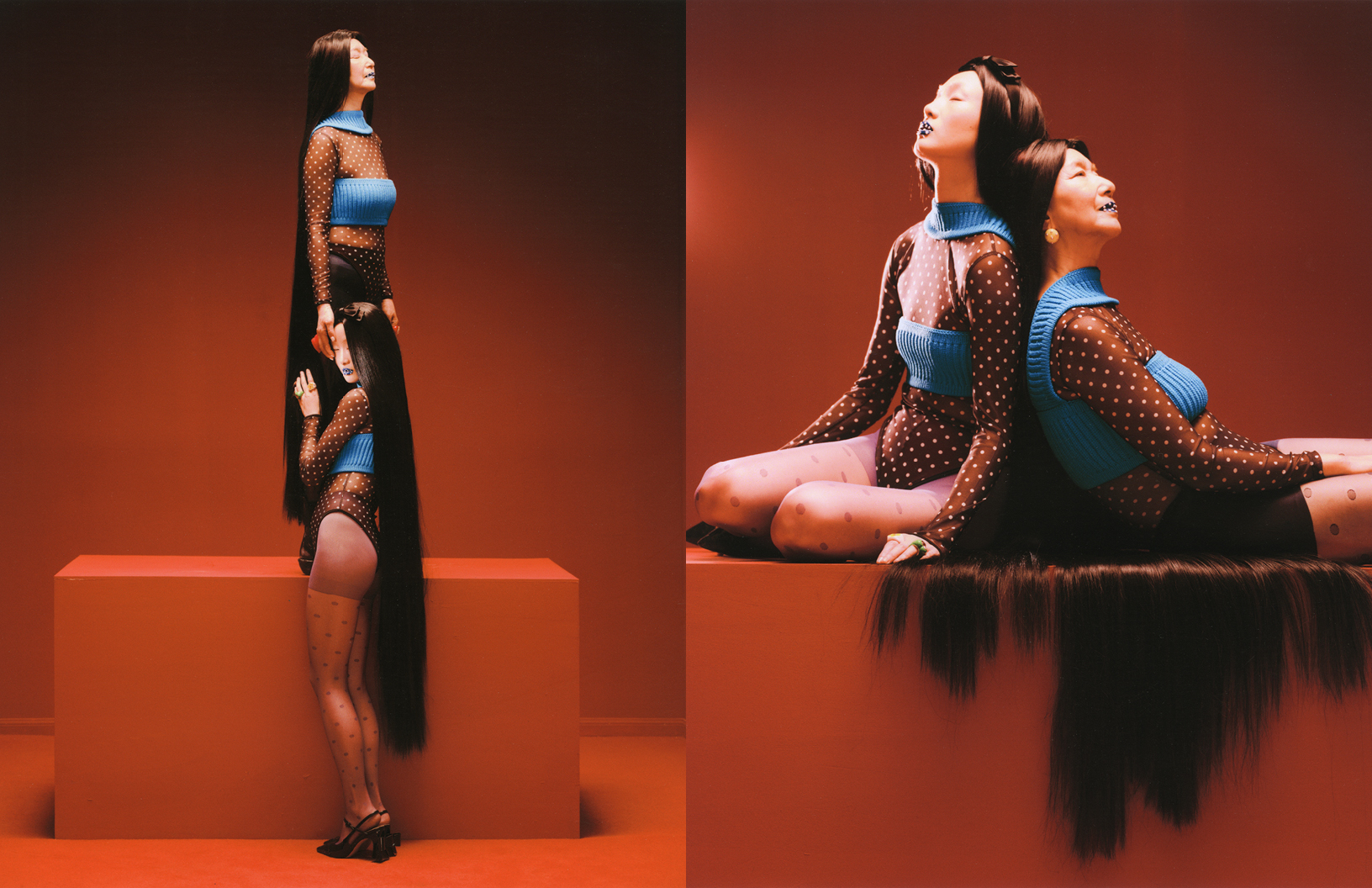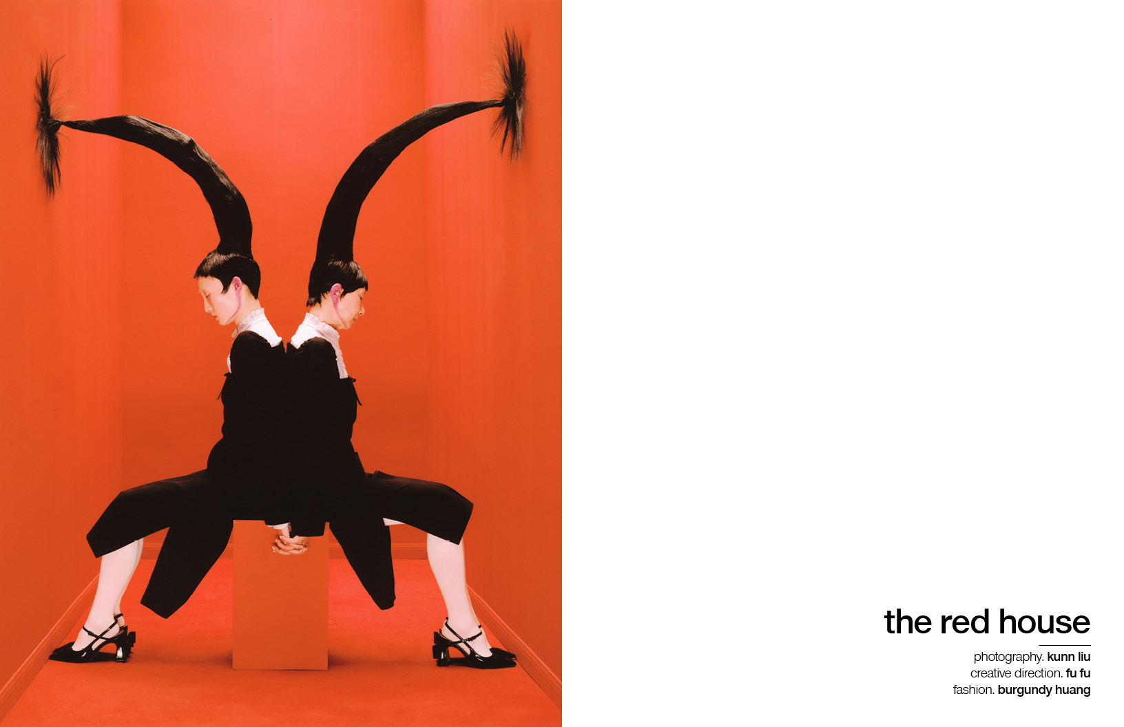 In this Schön! editorial, photographer Kunn Liu alongside Iwai Zhang explores how the red space transitions from expansive to constricted, eventually reopening; hair by Robbie serves as a metaphor for emotions, moving from interwoven to entangled, and finally to loosened; colour shifts from soft and subdued to intense, before settling into tranquillity. Drawing inspiration from Marina Abramovic’s performance art piece The House with the Ocean View, The Red House employs a multi-layered narrative of space, hair, colour, and fashion, curated by Burgundy Huang, to explore the emotional dynamics and relational evolution between two generations. Models for the editorial are Meng Duan + Majie who wear looks by SHUSHU/TONG, Hol!day, Nodress and others, with make up by Yanki.