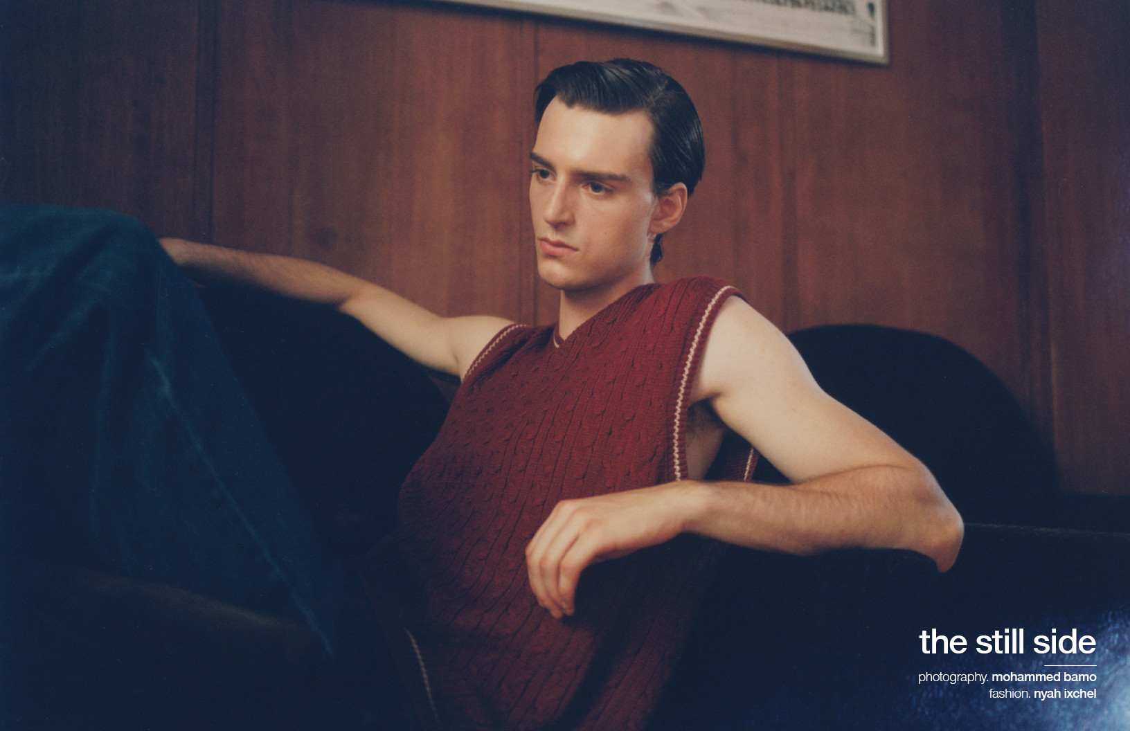 Penside and pondering, Steven Buck is lensed by photographer Mohammed Bamo in this Schön! editorial featuring styling by Nyah Ixchel with looks by Wrangler, Gucci, ESC Studios and others. Hair and make up by artist Lily Vanita.