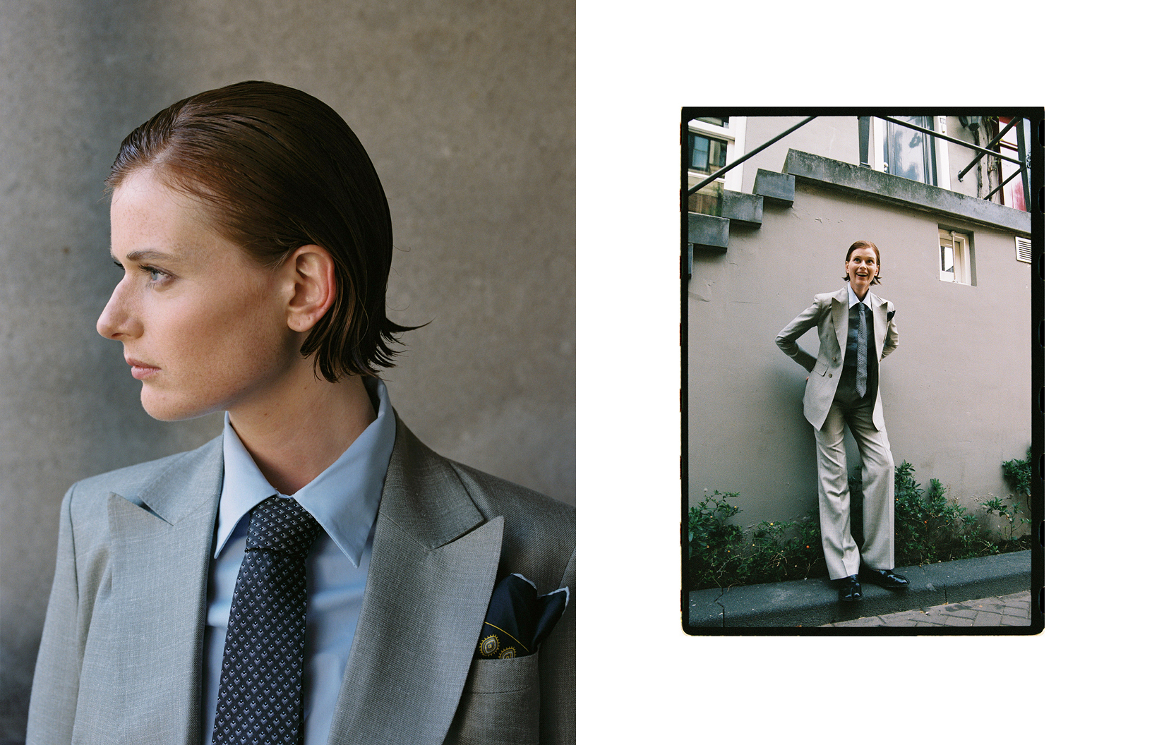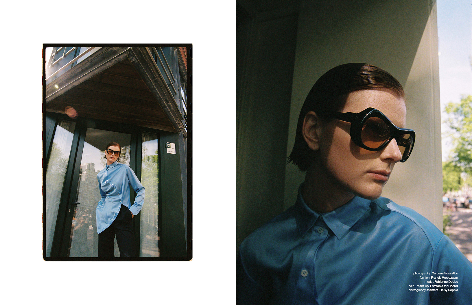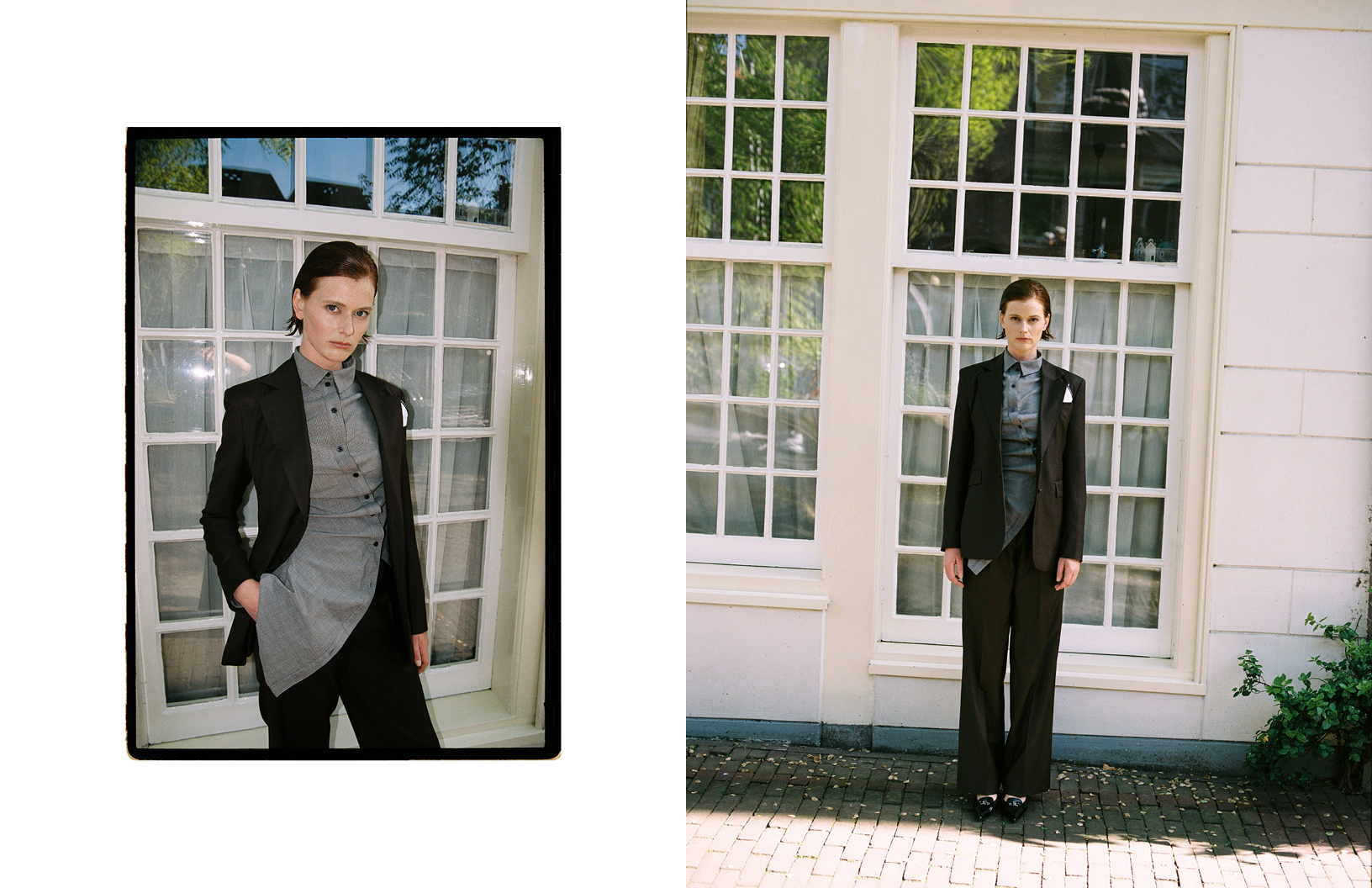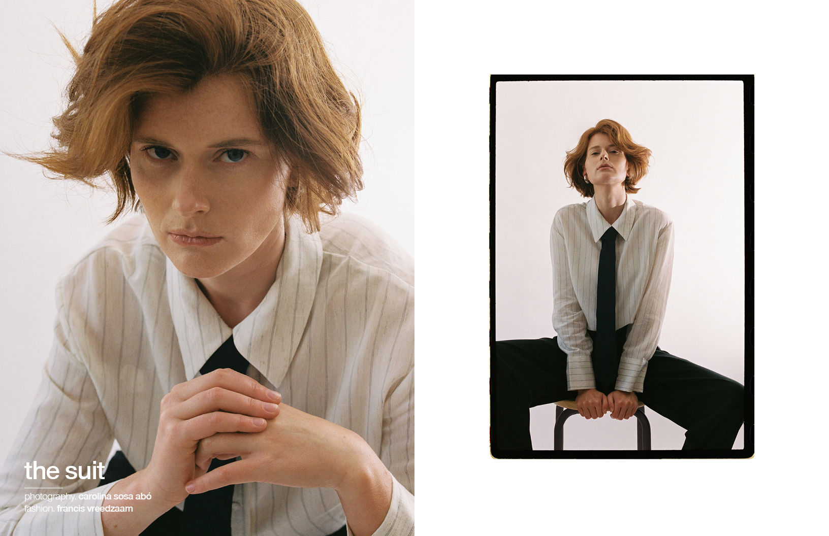 The power is in the suit in this Schön! editorial photographed by Carolina Sosa Abó with fashion by Francis Vreedzaam who dresses Fabienne Dobbe in looks by Sezane, Prada, Mesure and others, with hair and make up by Estefania ter Heerdt.
