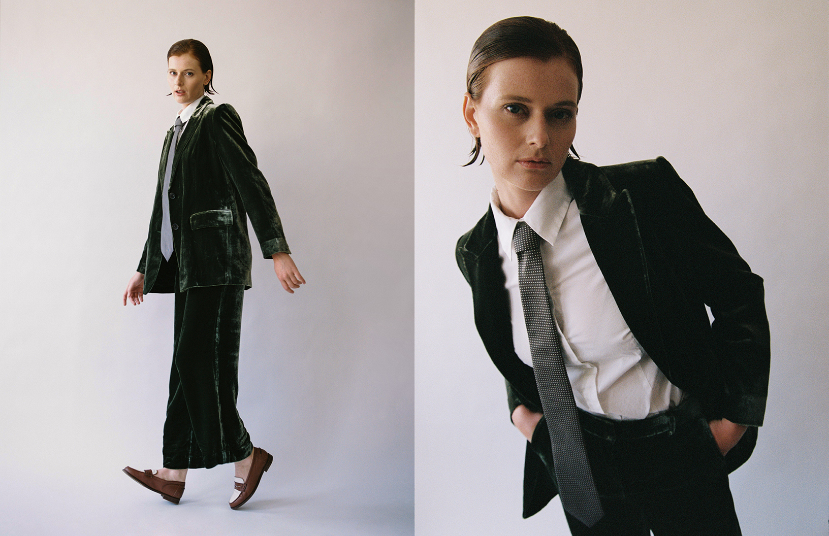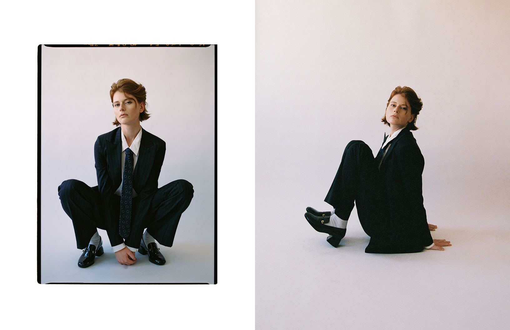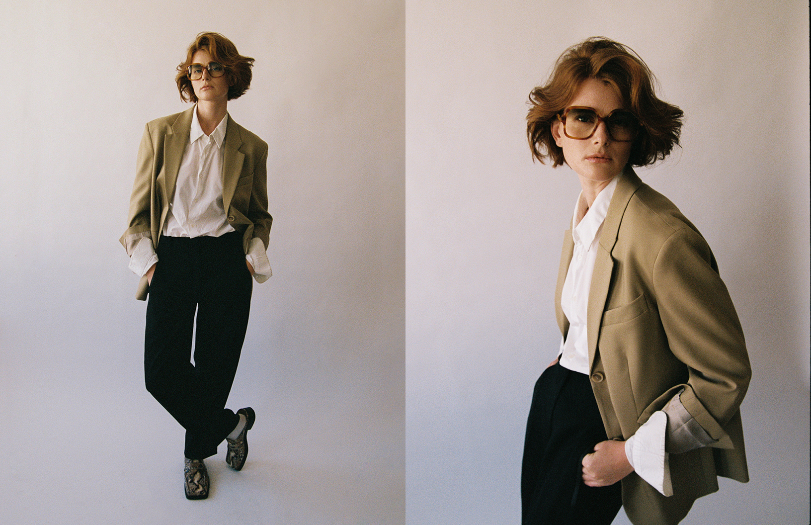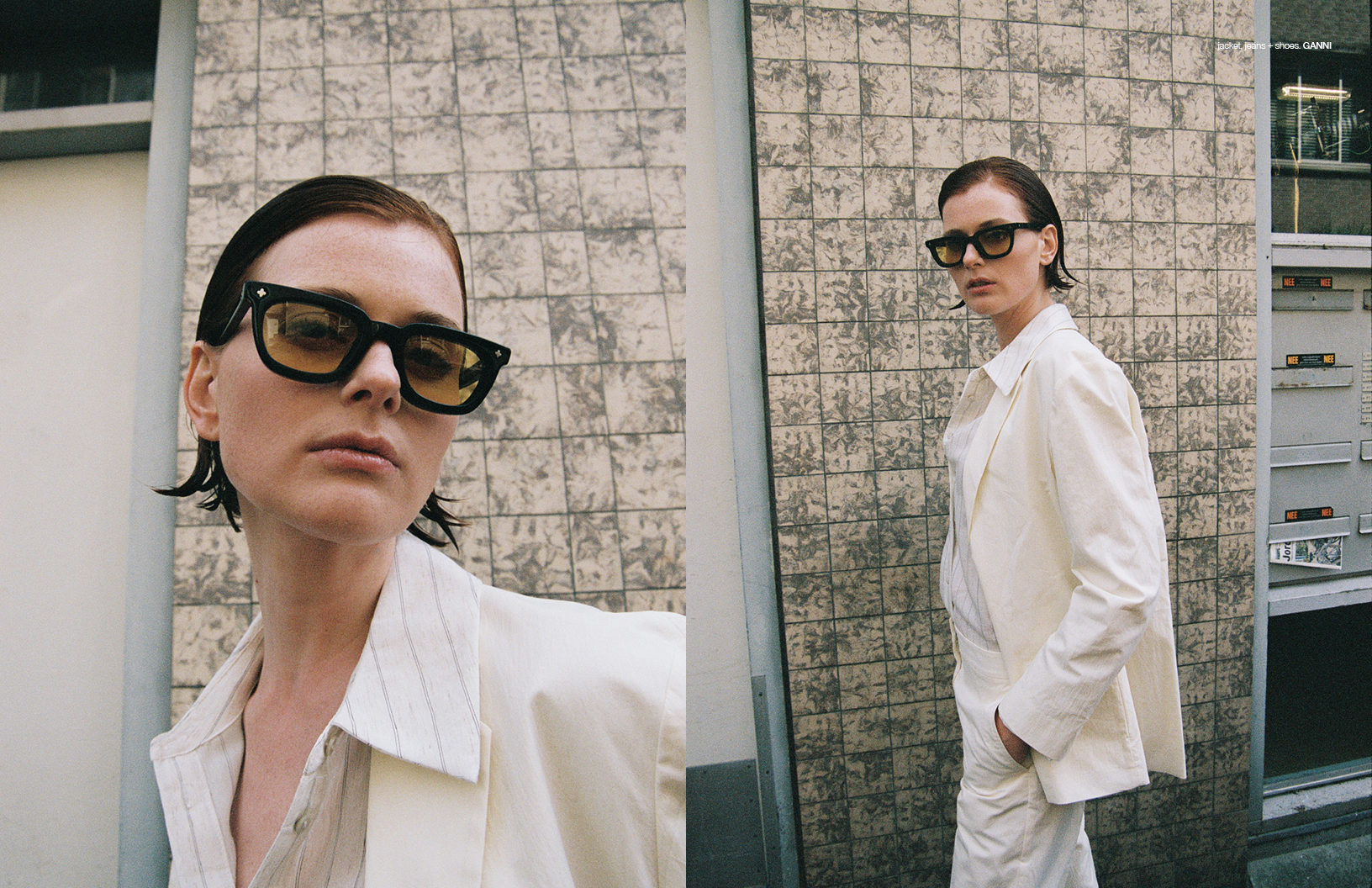 The power is in the suit in this Schön! editorial photographed by Carolina Sosa Abó with fashion by Francis Vreedzaam who dresses Fabienne Dobbe in looks by Sezane, Prada, Mesure and others, with hair and make up by Estefania ter Heerdt.