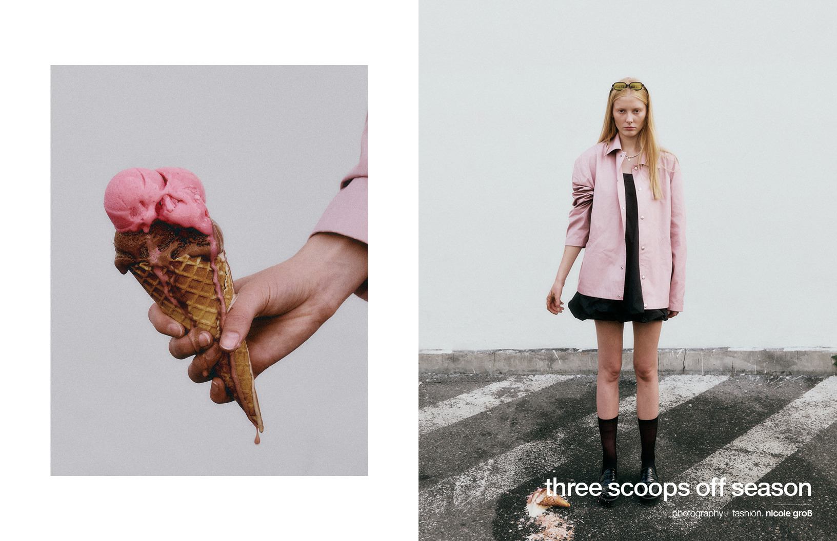 It’s a sickly sweet affair with model Anna in this Schön! editorial lensed by Nicole Groß with fashion by Groß who styles Anna in looks by Miu Miu, Free People, Armani and others.