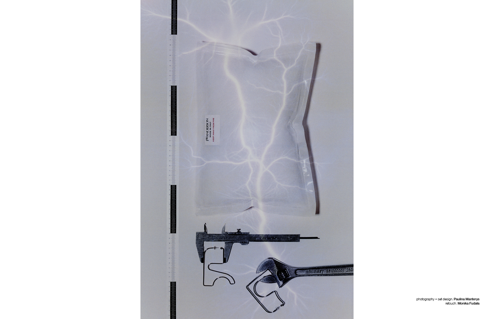 In a striking fusion of industrial grit and high-fashion ingenuity, this Schön! editorial transforms everyday hardware into avant-garde couture, featuring photography and set design by Paulina Manterys, with pieces selected from Jacquemus, Marc Jacobs, Balmain and others.