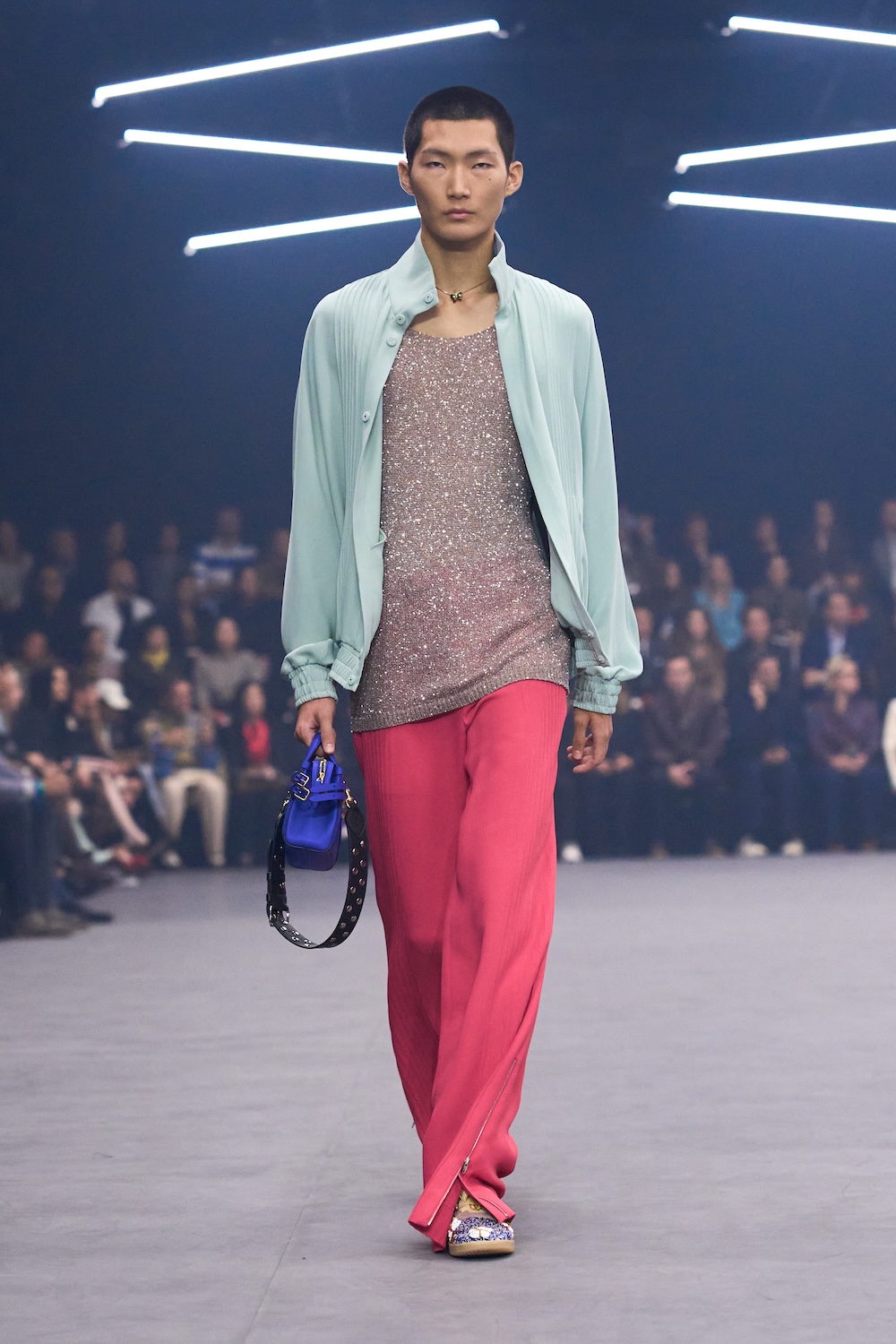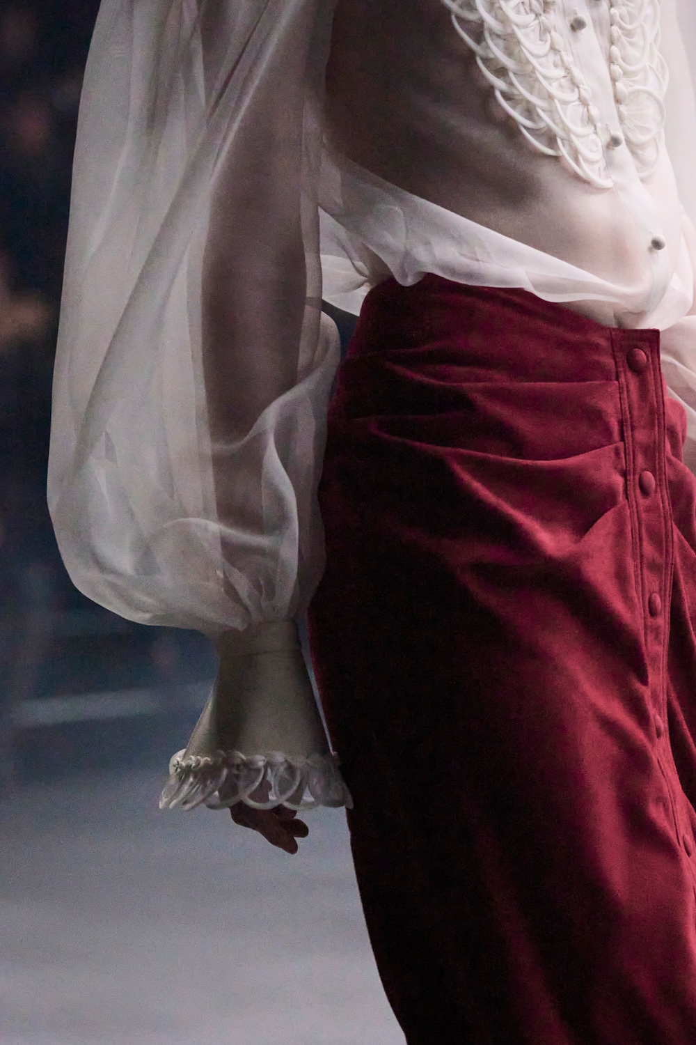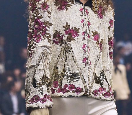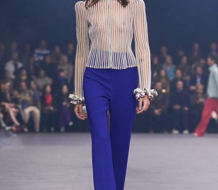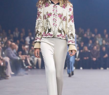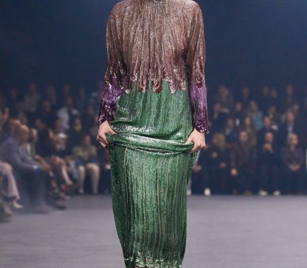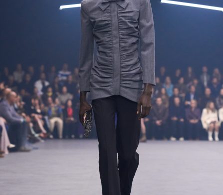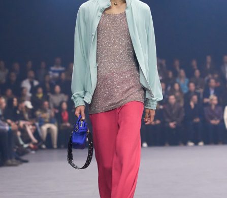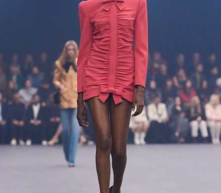 Weaving the idea of fireflies into the designs, Michele reworked the butterfly motif that was so dear to Monsieur in the collection details, from butterfly bows, brooches and necklaces, topped off with immaculate Valentino cuts, silks, pleats and colours. The bold colours echoed the history of Valentino: deep blues and reds, the polka dots that ran alongside the Valentino palette that build up the history of the house. The collection was undeniably chic and immaculately cut and designed – it felt like there was a newly found simplicity in the designs. It brought with it a sense of vulnerability, in which we saw Michele’s artistry laid out bare and generously, aligning perfectly on the history and legacy of Valentino, and anchored perfectly in the times we’re living through. This is a show that will stick with us for a long time.
