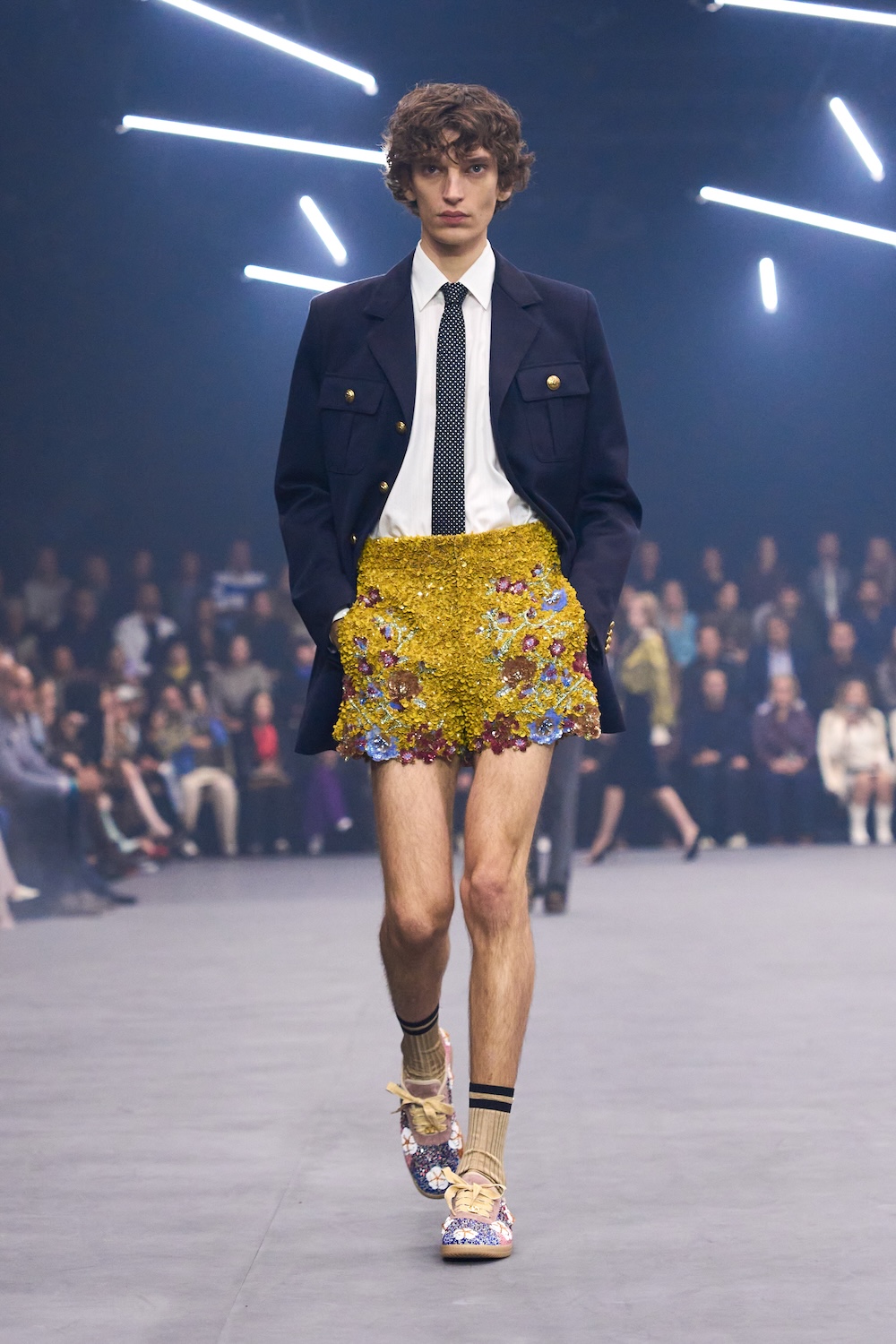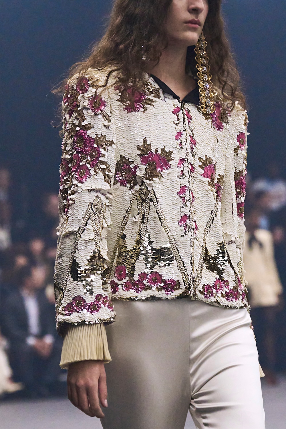 Fashion at its best is a form of expression which is grounded in real lives and bodies. It’s a tool that can reflect what’s happening in the world, and is able to mirror the times we’re living perfectly. There are shows and designs that resonate collectively with a sincere creative and philosophical vision, and are in direct link to what we are living collectively. This Sunday in Paris, we experienced just that. The new Valentino collection designed by Alessandro Michele was presented in a profoundly moving and utopian show. Signalling a strong desire for community and connection, the Spring/Summer 2026 collection was inspired by a letter from Pasolini, written in 1941, in which he described the sparks of hope that unite people as fireflies – last glimmers of hope in the face of rising darkness and the return of fascism. As the show opened with an introduction read by Pamela Anderson, lights flickered and spun in the dark. As Anderson described the fear of the return a violent global state of affairs, the models began one by one to emerge, with embroideries, sequins and silks glimmering in the play of lights, and the mysterious Michele magic began to work – emotions began flooding, a sense of despair and fear countered by beauty, feelings of amazement at togetherness, and a sense of awe at the figures walking seemingly lost, but ultimately not alone.