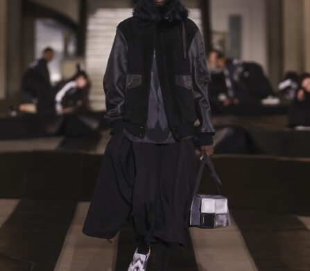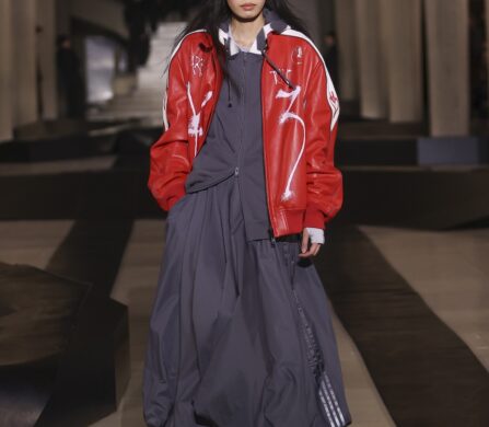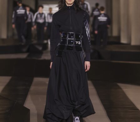 Someone wheeled a skateboard down the marble steps at Palais d’Iéna and nobody treated it like an oddity. At Y-3’s Autumn/Winter 2026 presentation, skate and speed culture rode off together with graffiti and Grand Prix attitude stitched into a wardrobe that wants to move.