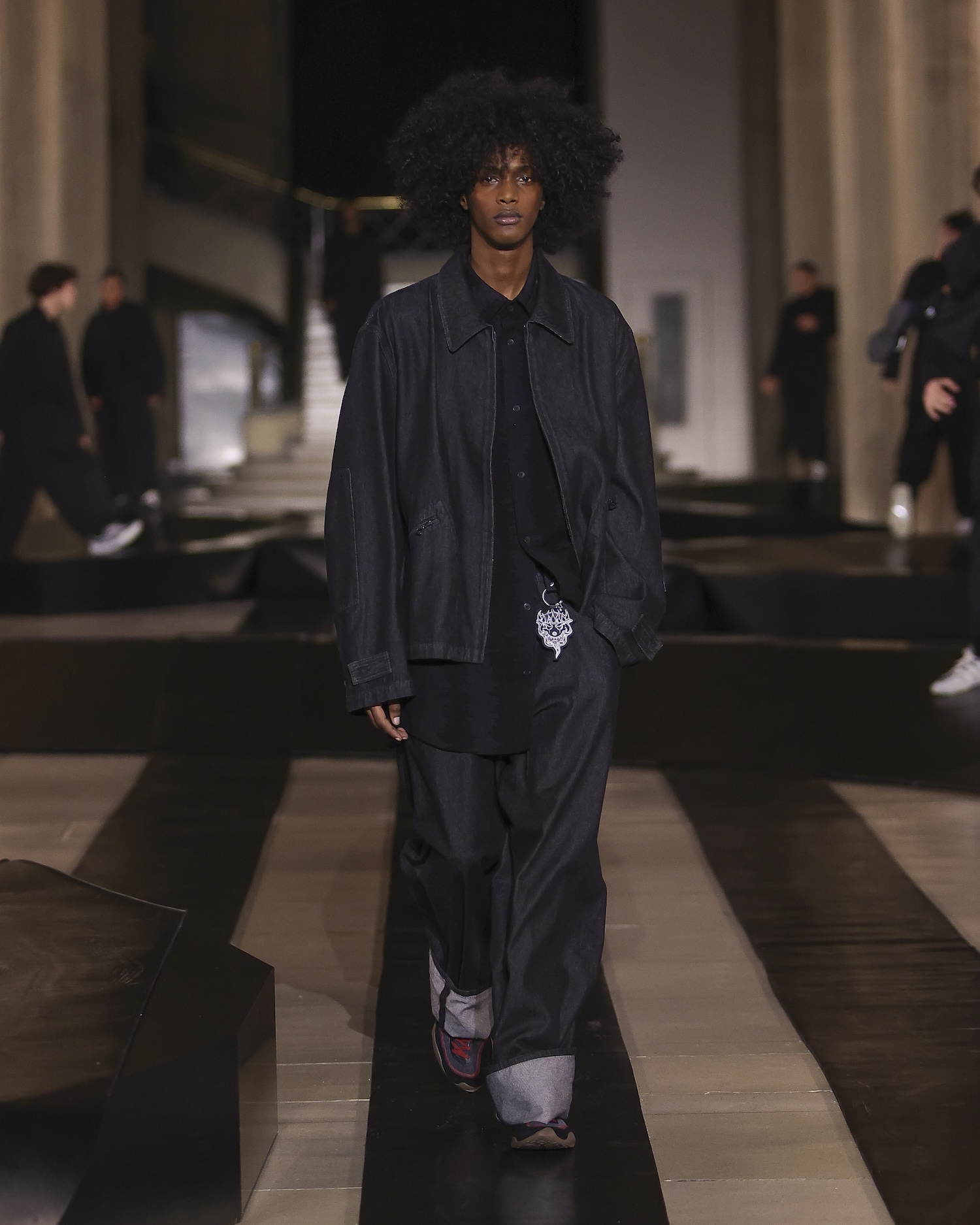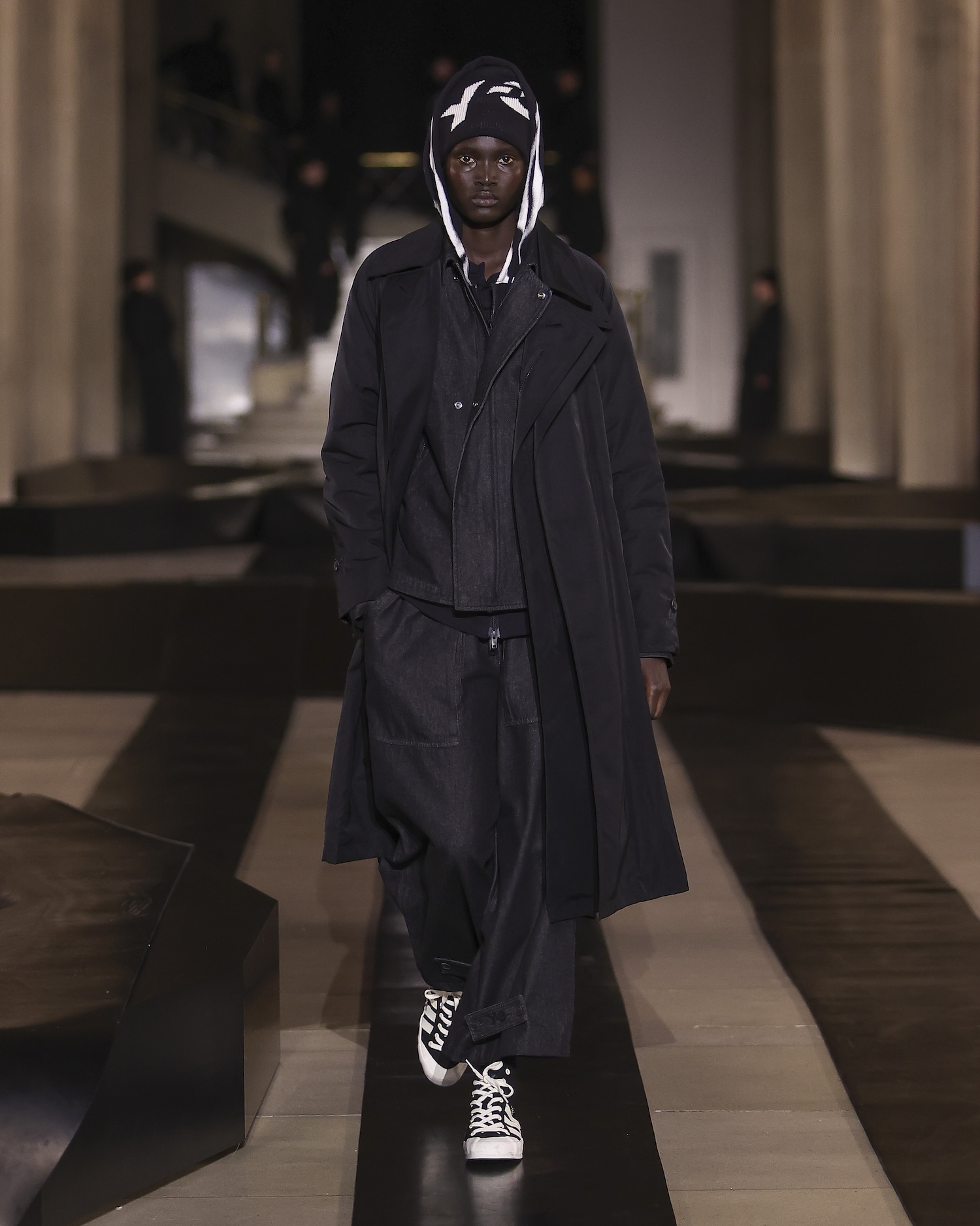 In a move that had long-time fans doing a double-take, denim returned to the label for the first time in over a decade. This homecoming for the fabric was cemented by the presence of the legendary skateboarder Mark Gonzales, who stepped out in the Y-3 Nisi. As the brand’s first-ever fully vulcanised sneaker, it represents a gritty, functional bridge between Yamamoto’s poetic silhouettes and the physical demands of a kickflip.