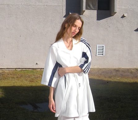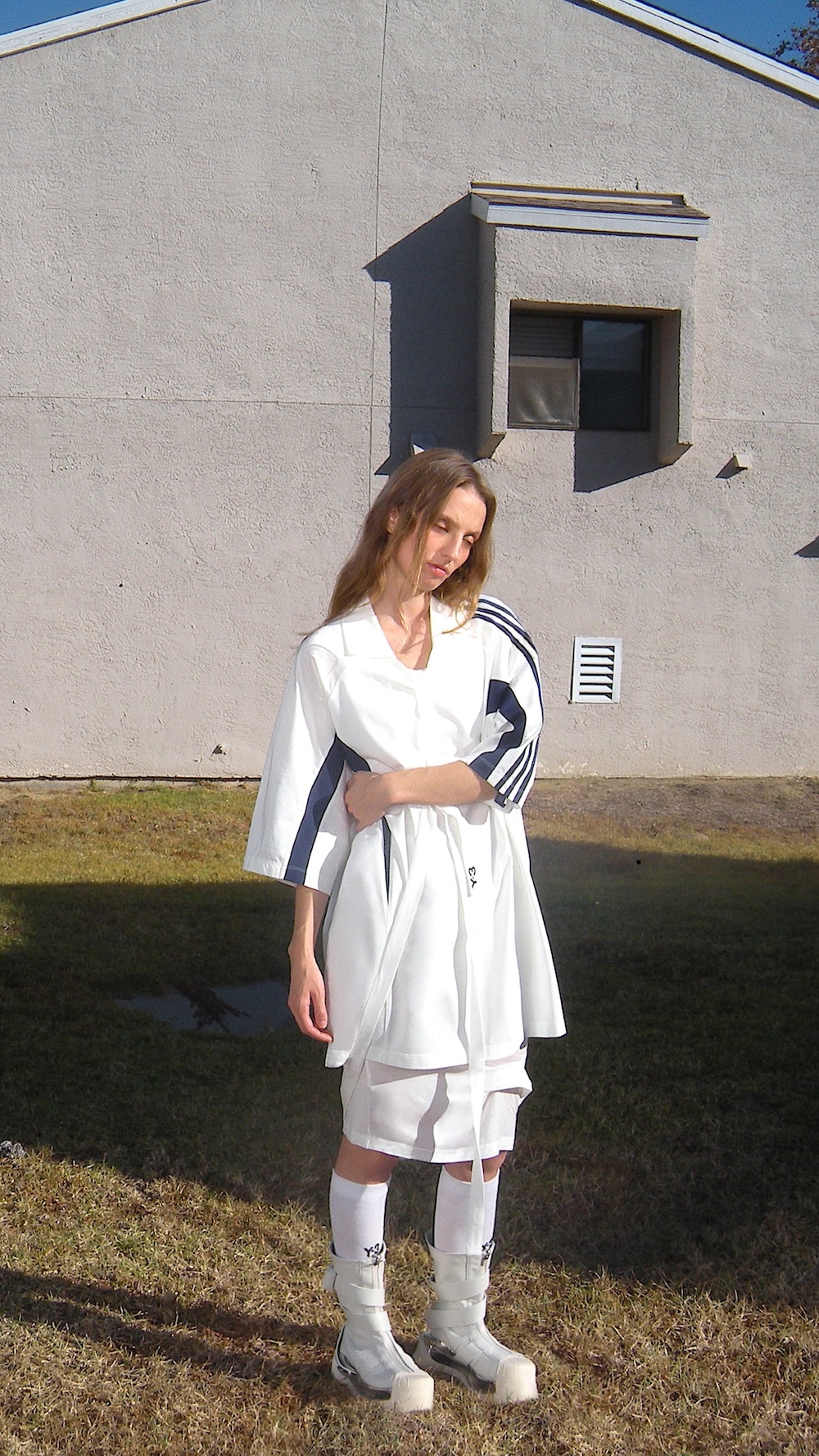 At its core, the project is inspired by quantum entanglement, the idea that certain bonds exist beyond space and time. It’s a fitting concept for a collection that embodies the ongoing synergy between Yohji Yamamoto and adidas, and for the partnership between Collins and Haworth, whose artistic dialogue continues to evolve. Captured through Haworth’s lens, the imagery plays with perception, shifting between different versions of Collins — sometimes the observer, sometimes the observed — echoing her own relationship with the camera.