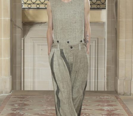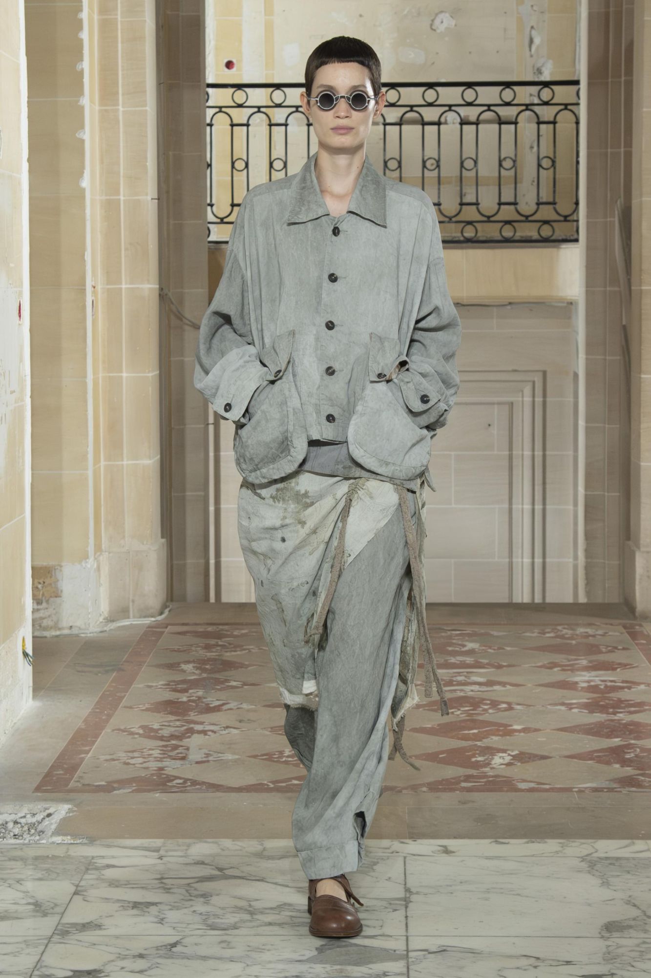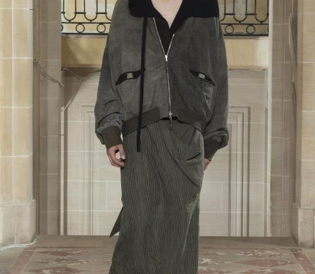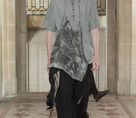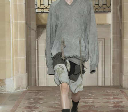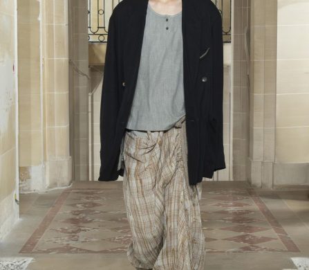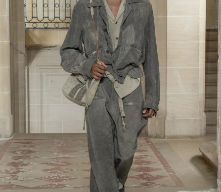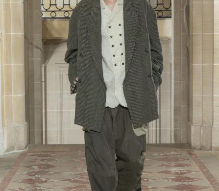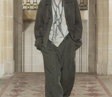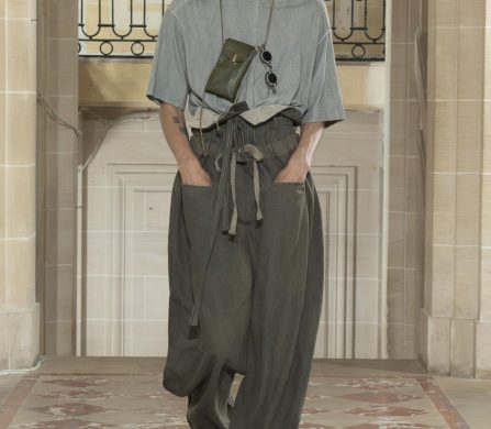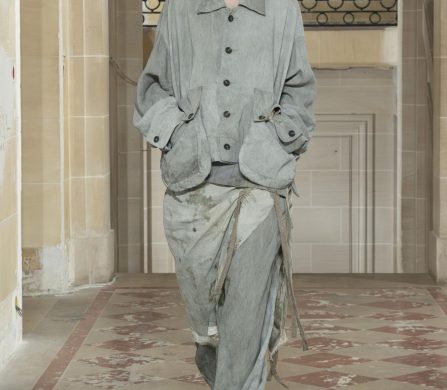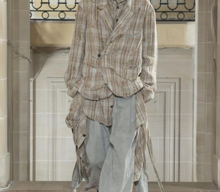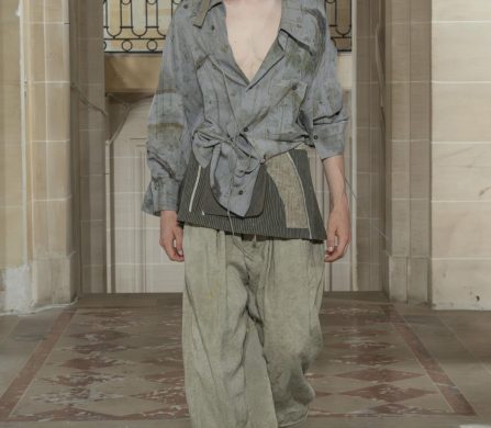 While his earlier collections leaned into rugged asymmetries and abstract tailoring, PRITRIKE reworks Chen’s iconic layered, worn-in aesthetic into something softer and more fluid. “The primary idea was to introduce fresh colours into our palette and steer everything toward a softer direction. This applies not only to colours but also to the composition of materials, craftsmanship, and silhouettes,” he explains. Each element is meticulously adjusted: new yarn counts, blends, and weaving techniques combine to create textures that feel both natural and nuanced. The dyeing process favours softness and a natural unevenness, steering away from harsh fades or stark contrasts.